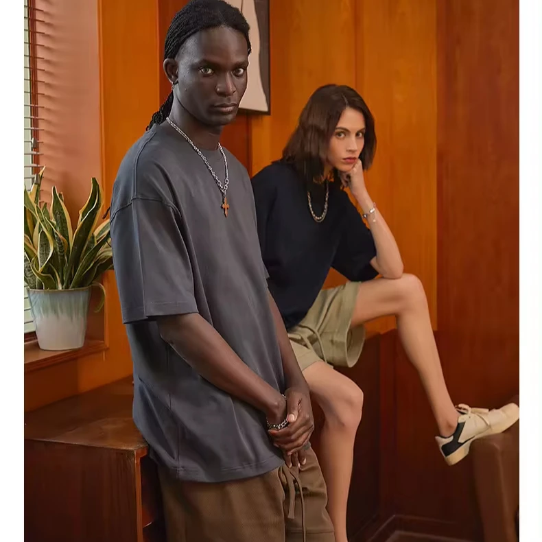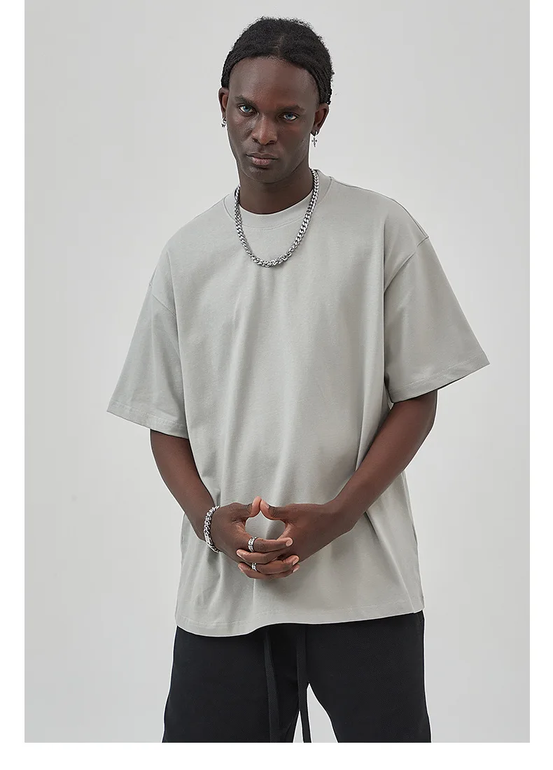 275G New Release Double Pure Cotton Solid Color Loose Fitting Short Sleeved Men's T-Shirt Custom Logo Plus Size Breathable