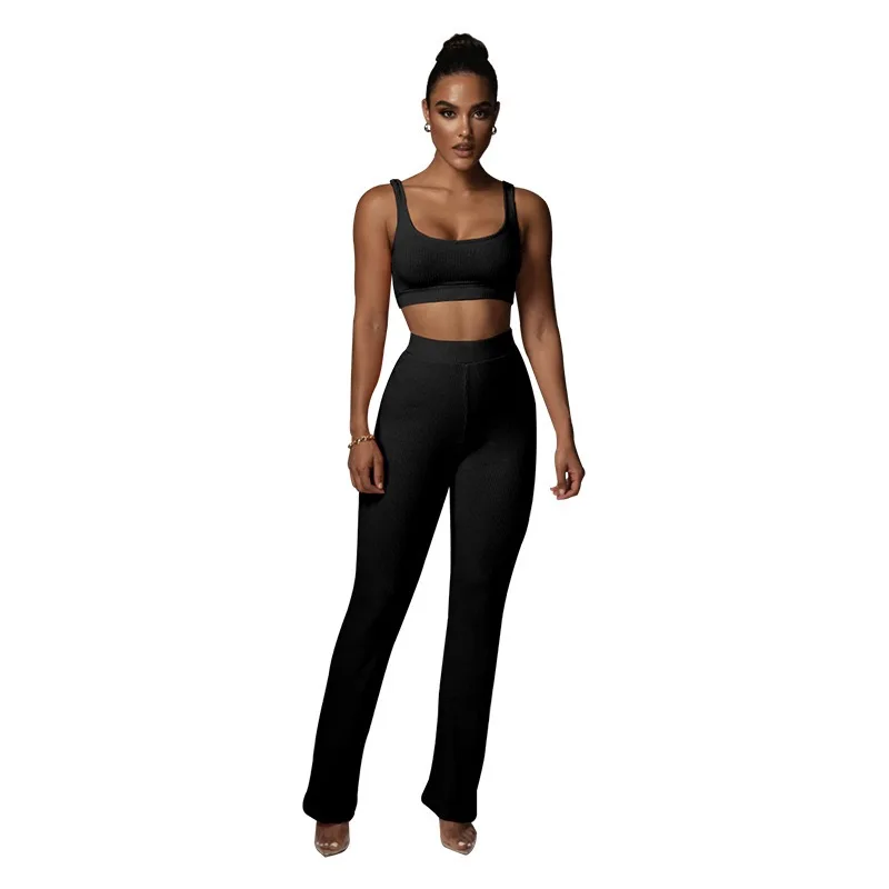 2026 Solid Color Sleeveless Vest and Long Knitting Yoga Pants Suit with Bow Collar Fashionable Casual Straight Hip Hanging Top