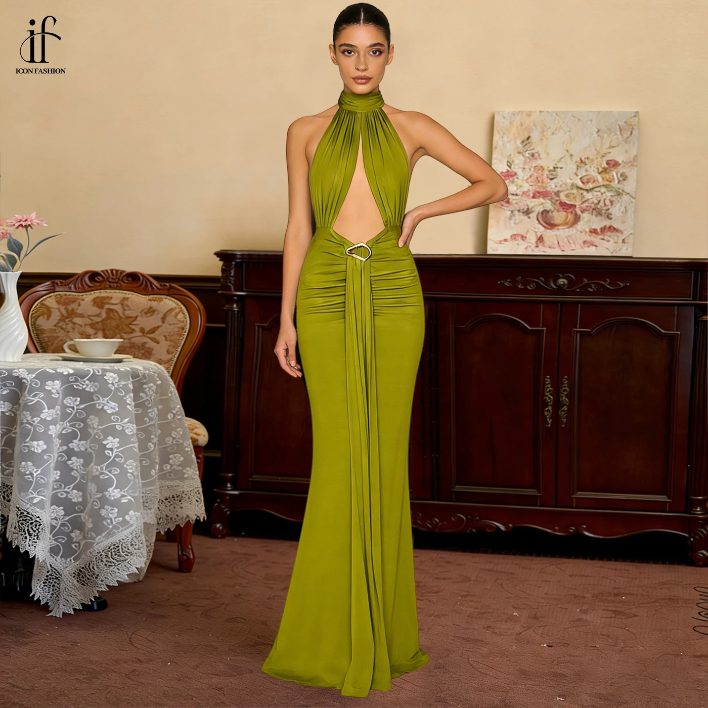 Sexy and Elegant Evening Dress with Neck and Backless Straps Dress Party Women Elegant