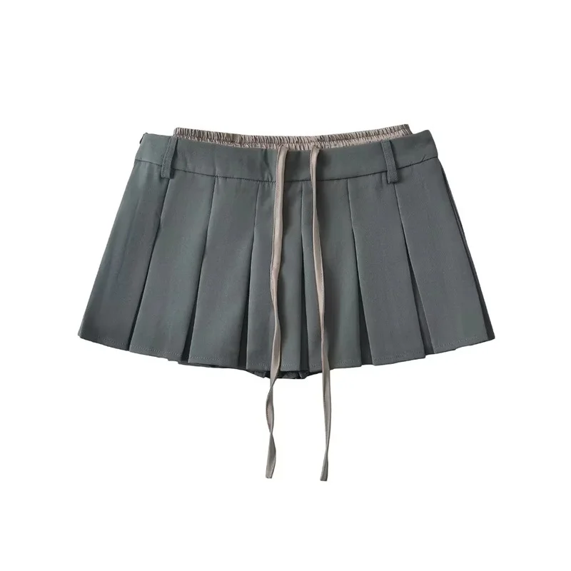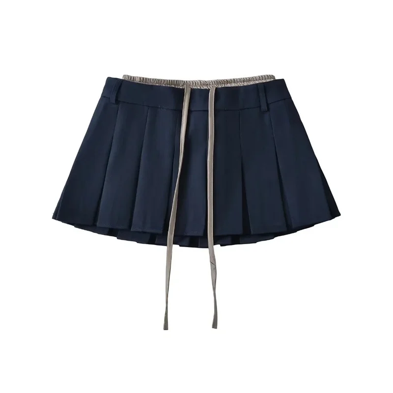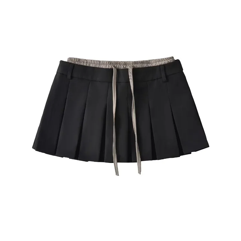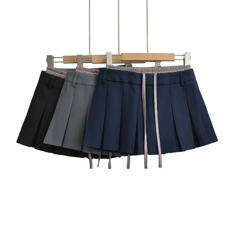 Hot Sale Custom 3-Color Casual Mini Pleated Skirt for Women Solid Colors Drawstring Waist Natural Waistline Dresses Women
