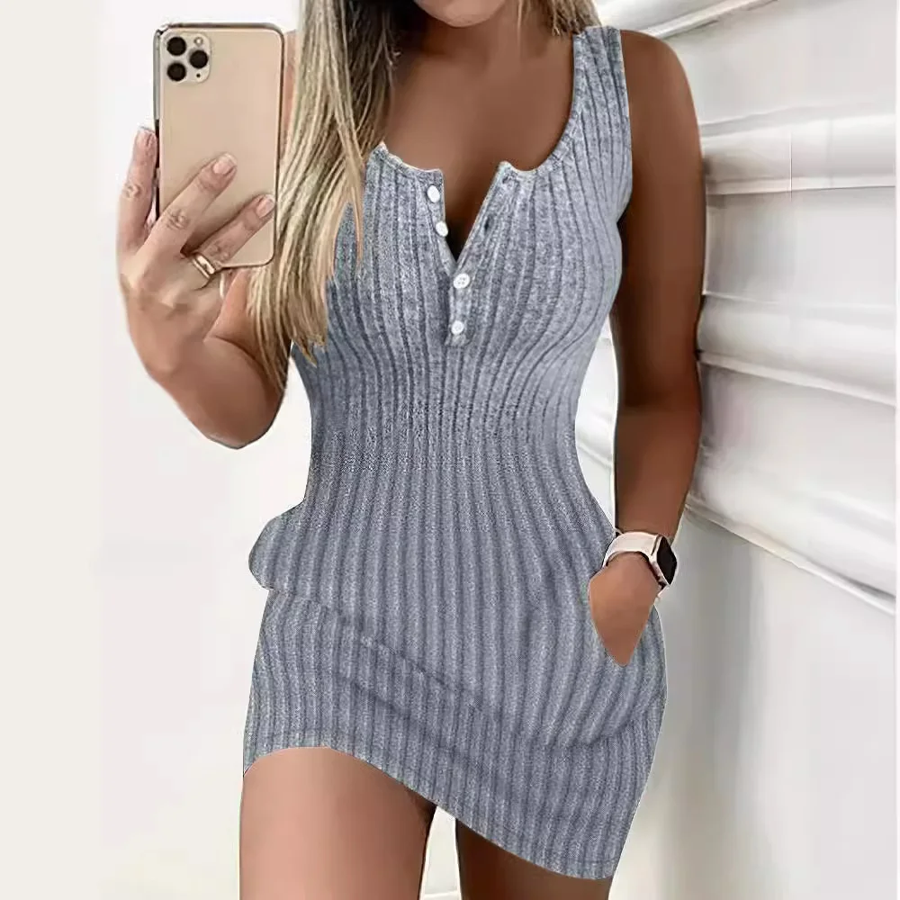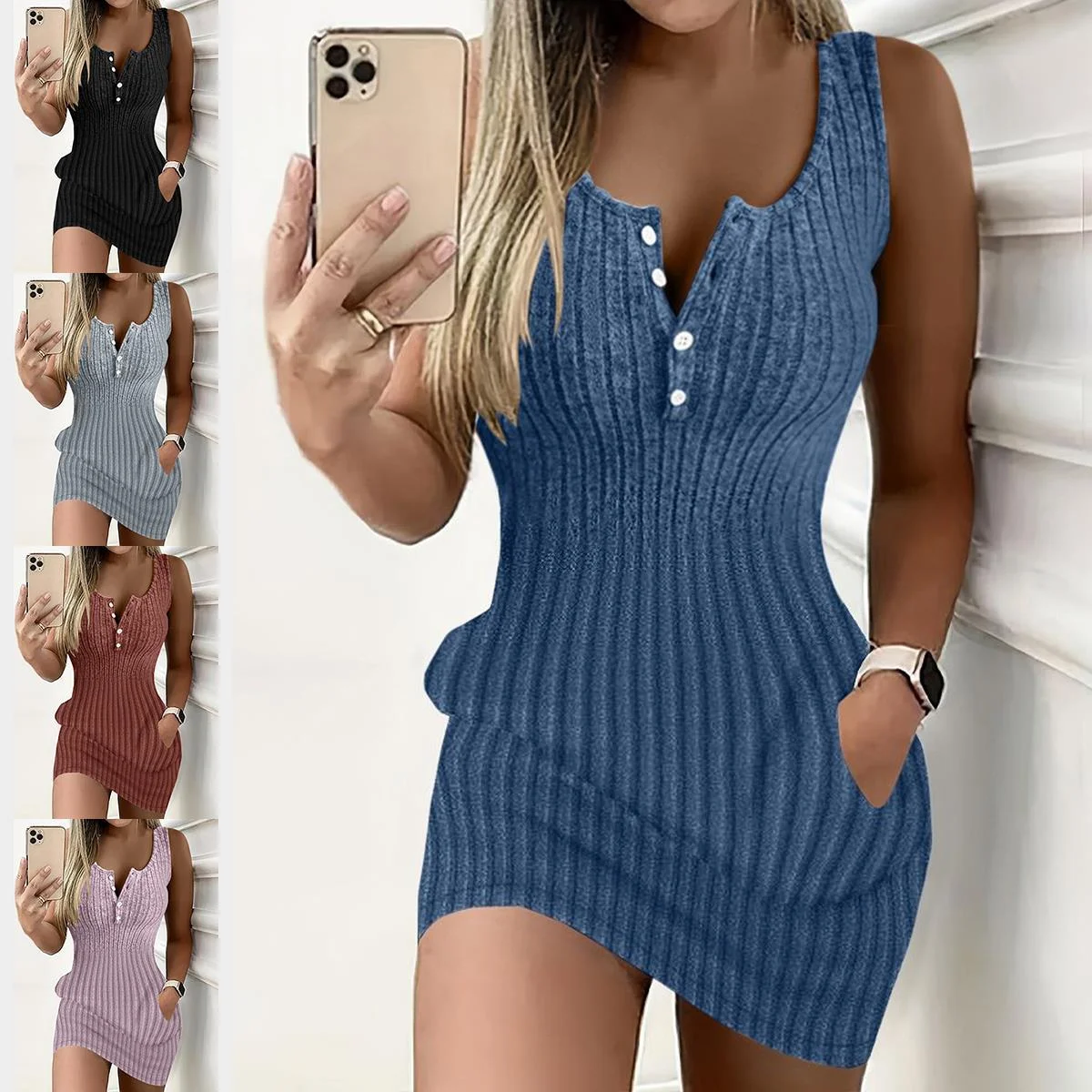 MIYING New Summer Casual Fashion Knitting Breathable Anti-Wrinkle Dresses Women Custom Midi Slim Dress for Women