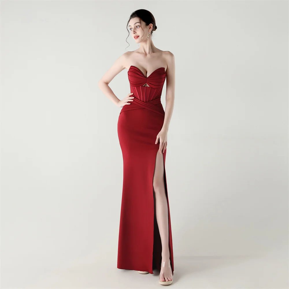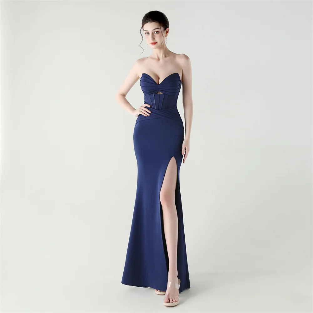 2025 New Fishbone Lace-up Evening Dress ManufacturerChest-wrapping Pleated Hollowed-out Evening Dress for Banquets
