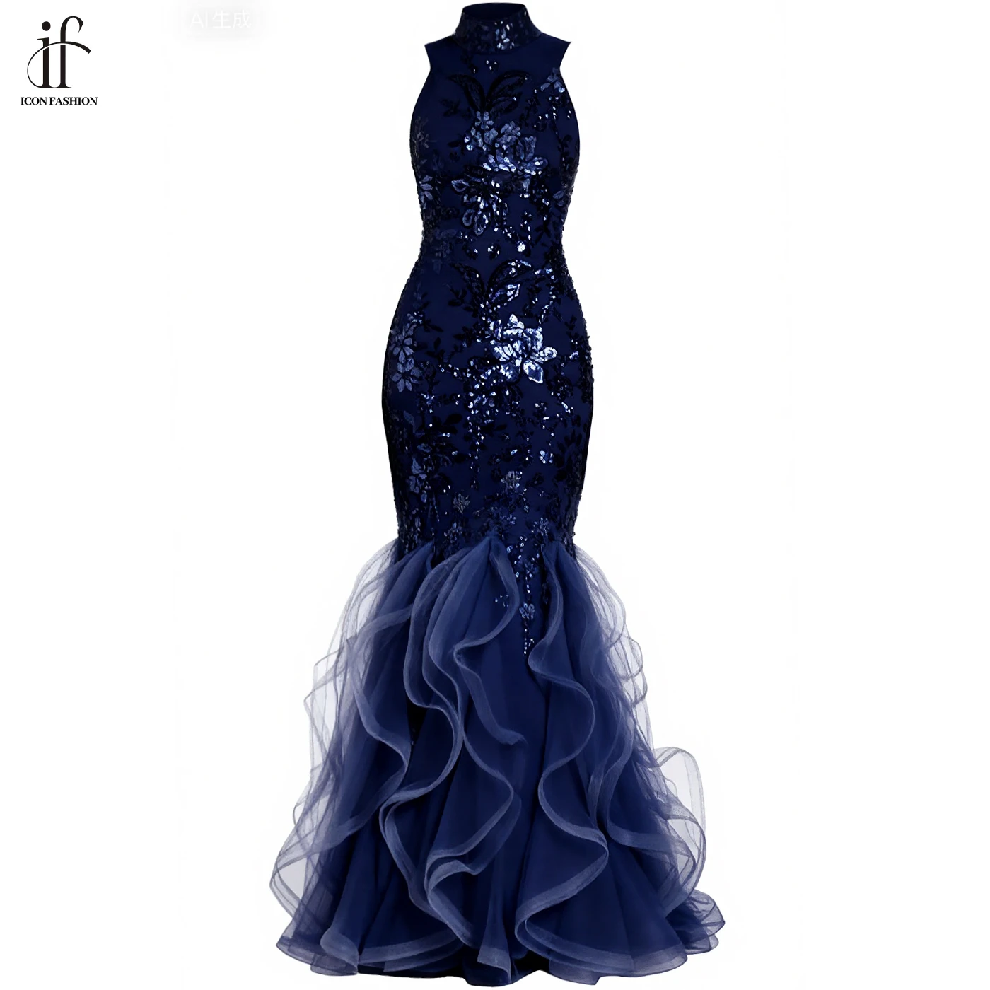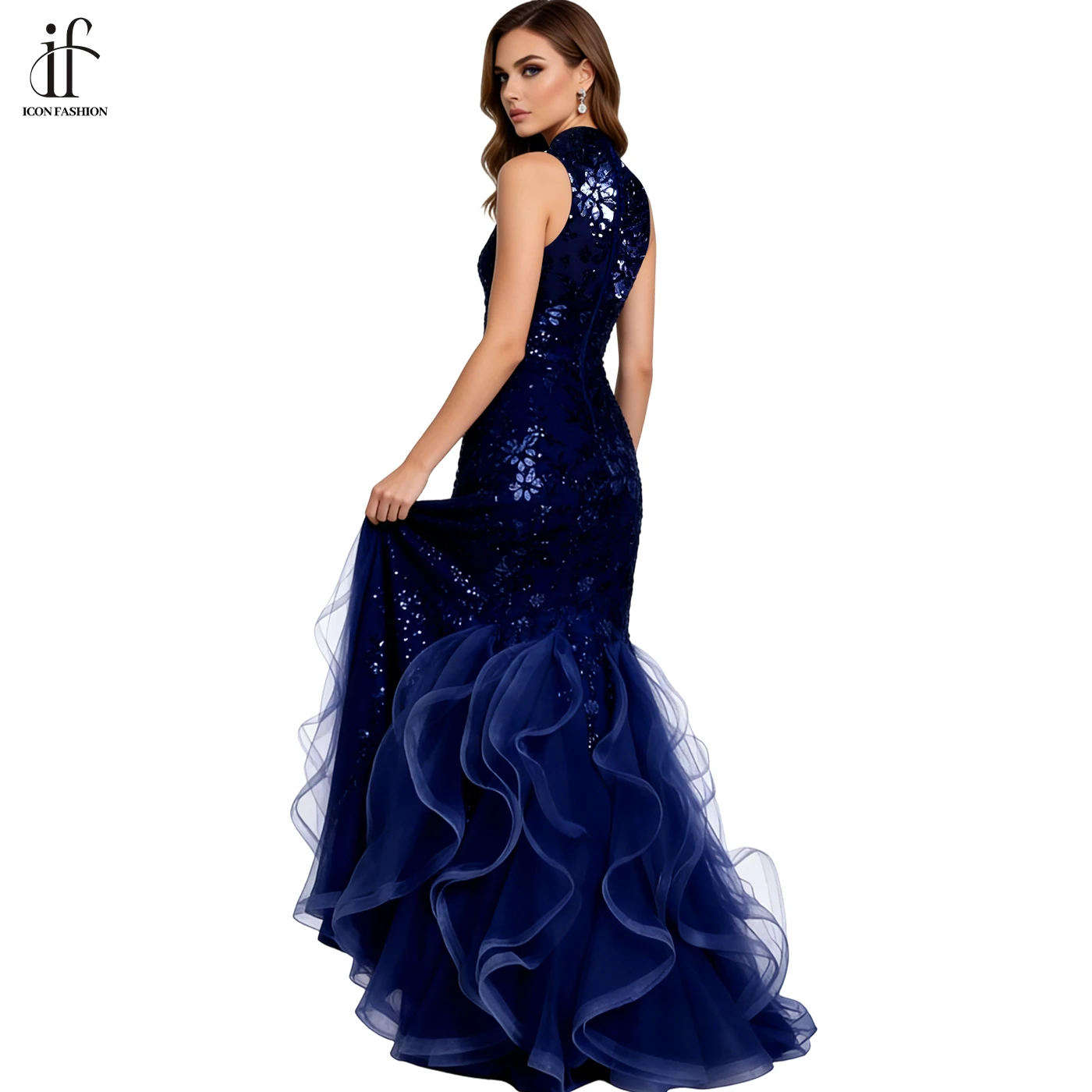 Sequin Mesh Sleeveless Evening Dress for Party Luxury Elegant Women Dresses Women Custom