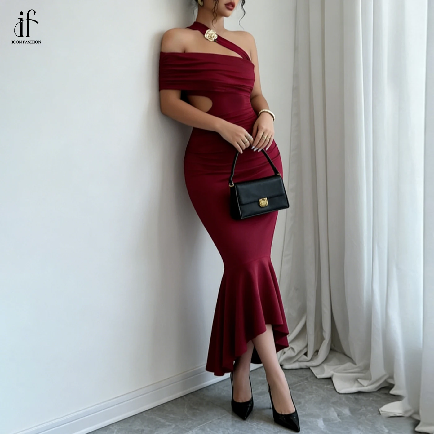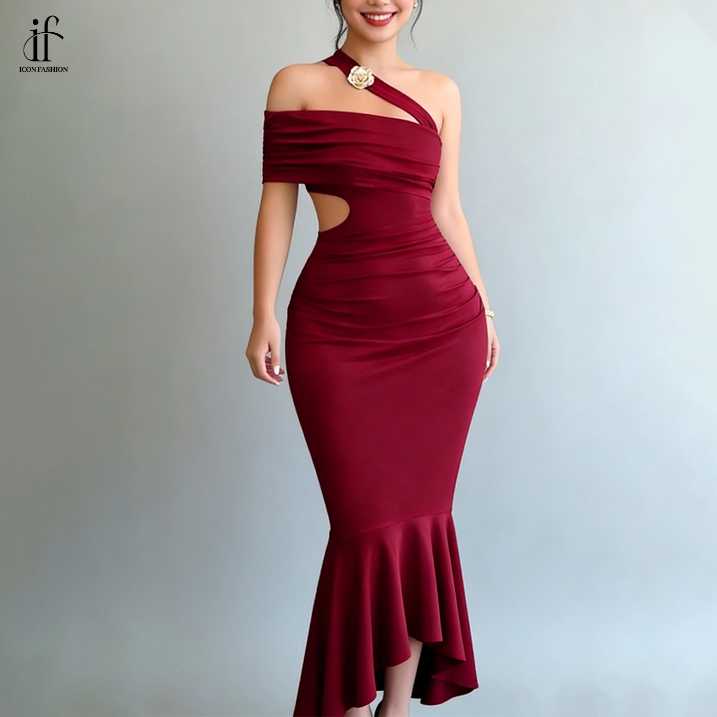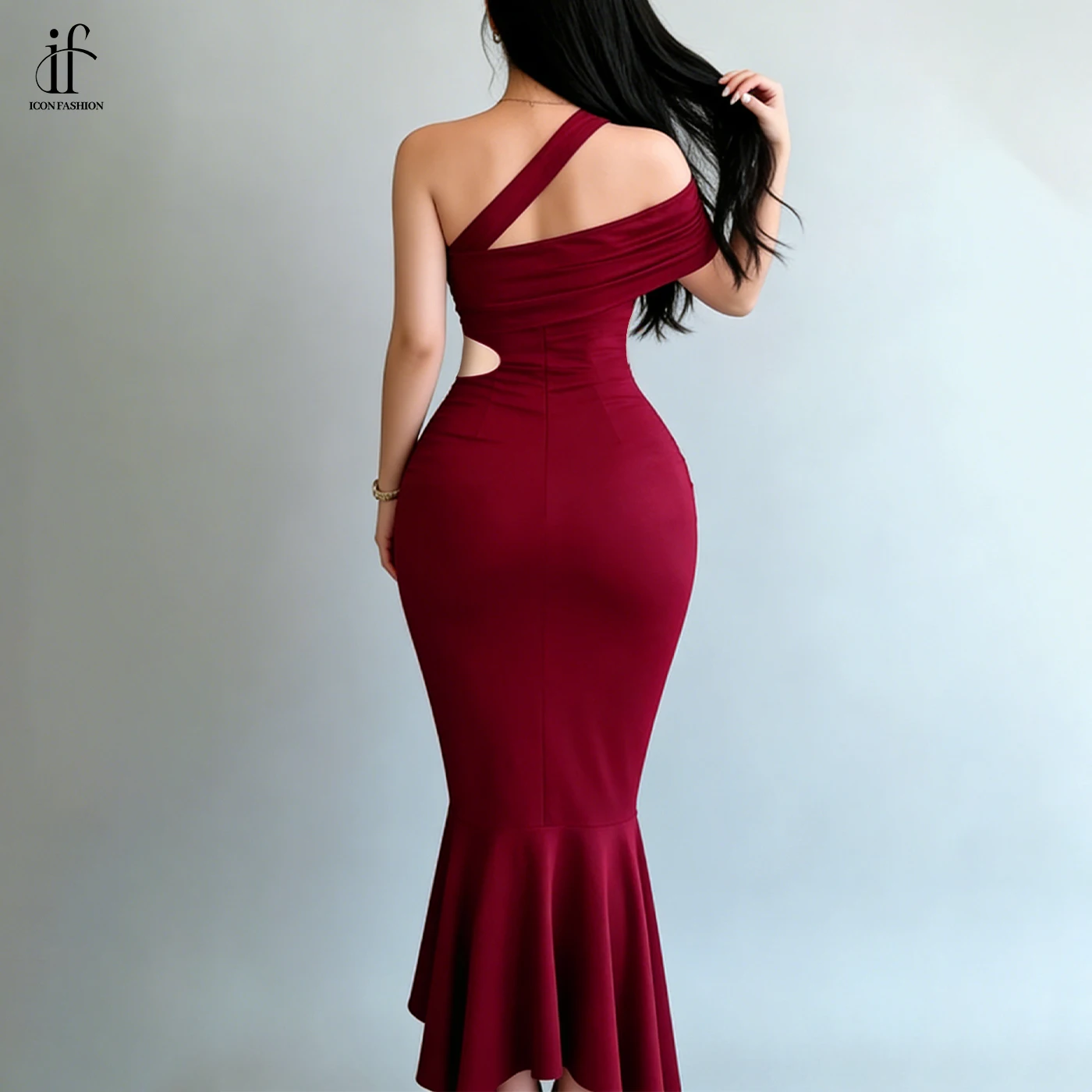 Elegant Custom off Shoulder Evening Gown Backless High Waist Cutout Mermaid Dress Asymmetric Hem Sexy Bodycon Dress