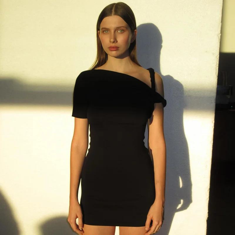 Wholesale Vintage Casual Slim Sexy Bodycon Short Dress Short Sleeve Splicing Twist Tie Empire Waistline Belt for Summer Autumn