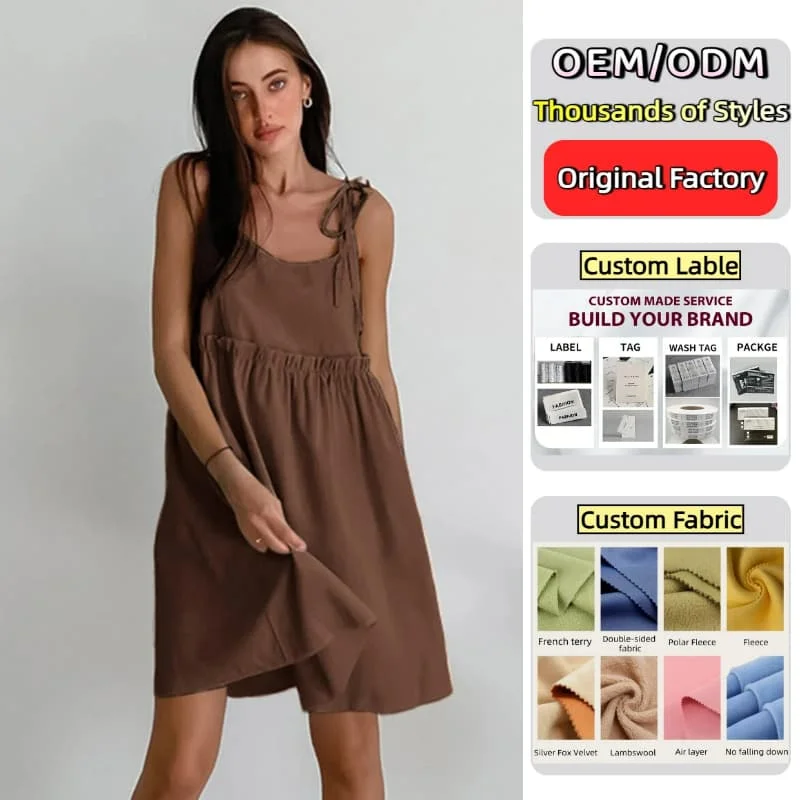 Cotton Custom logo Cami Adjustable Strap Smocked Ruffle Waist a Line Mini Dress Sleeveless Sundress Summer Clothes for Women