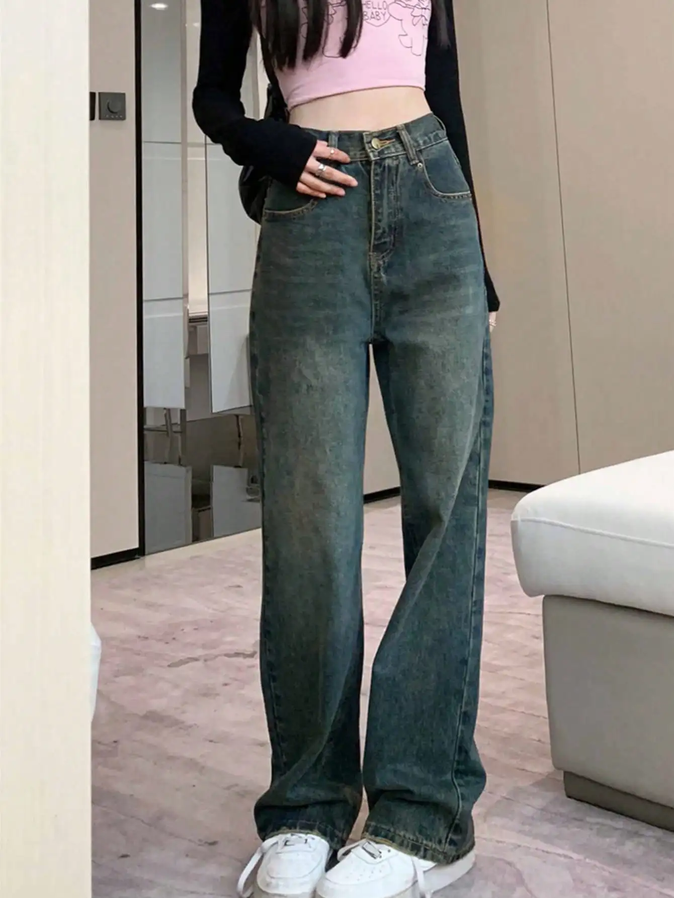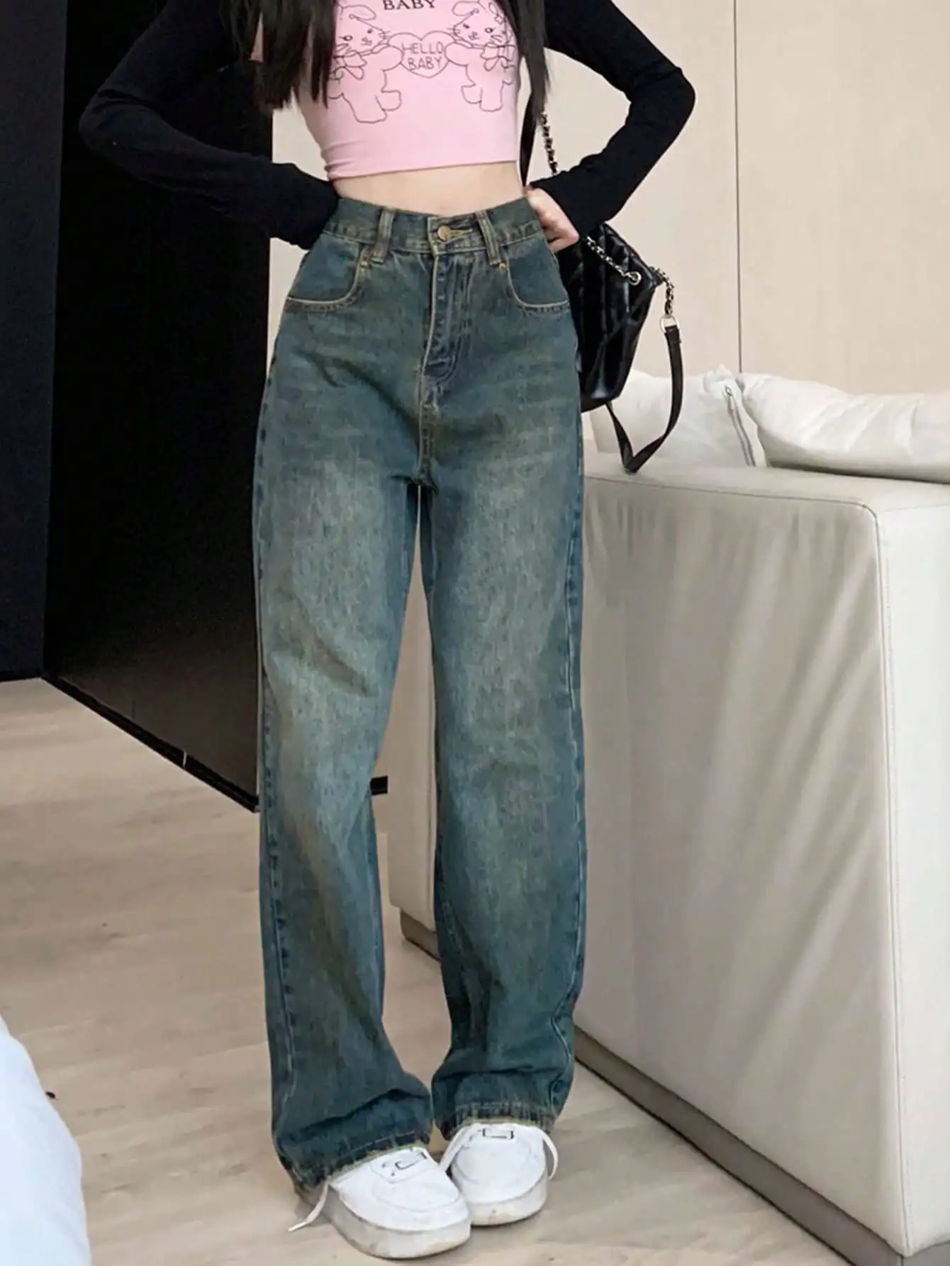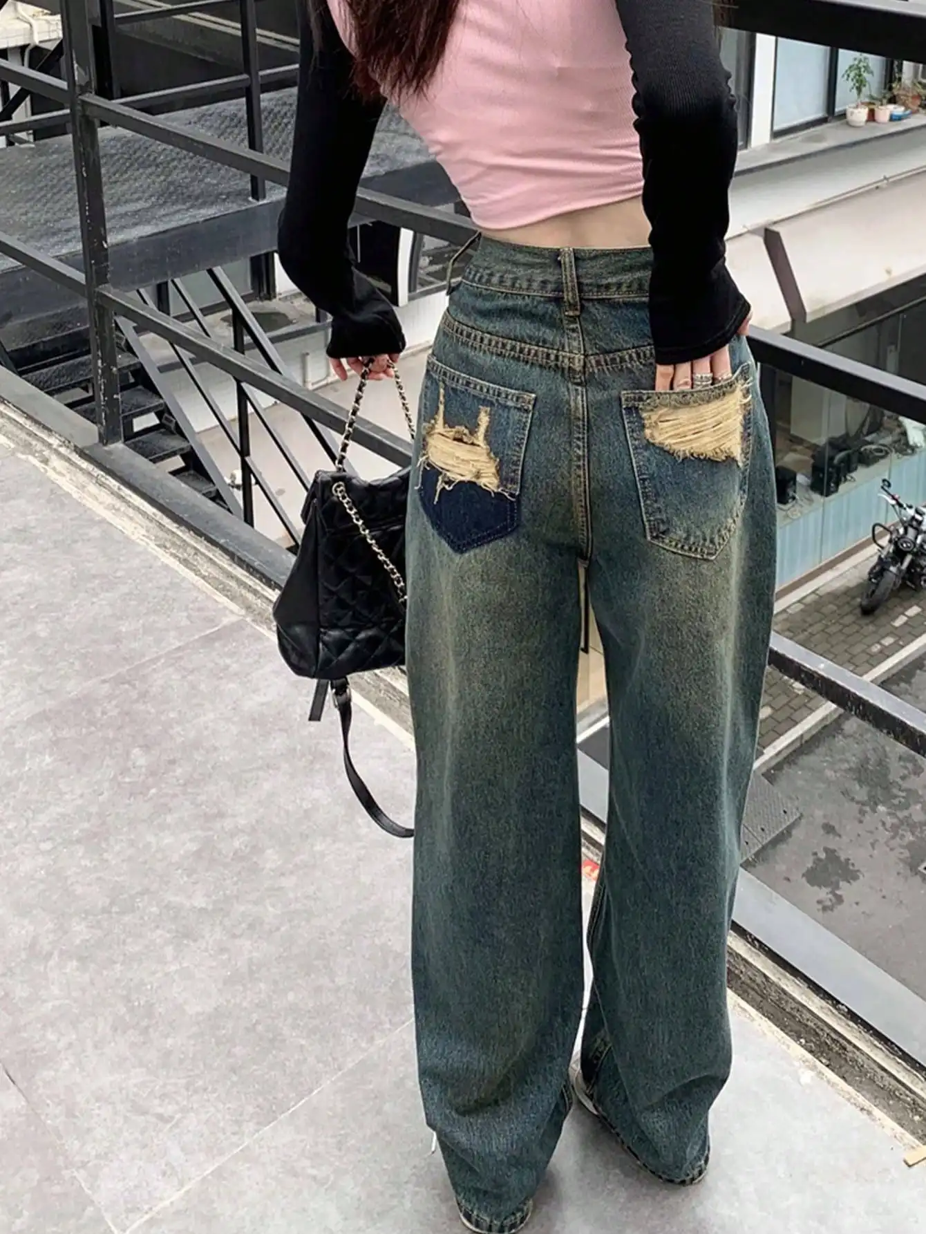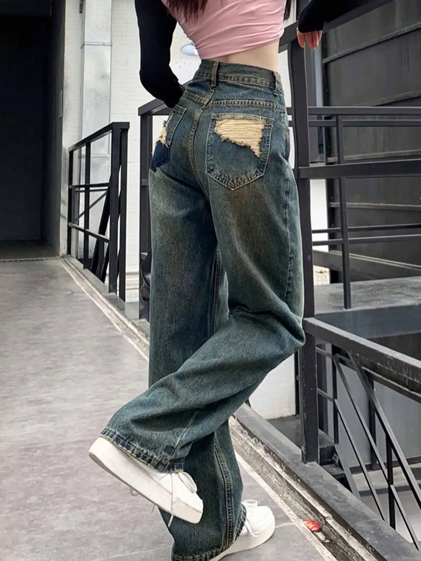 2025 Y2k Ripped High-Waisted Jeans Women Harbor Style Retro Wide Legs
