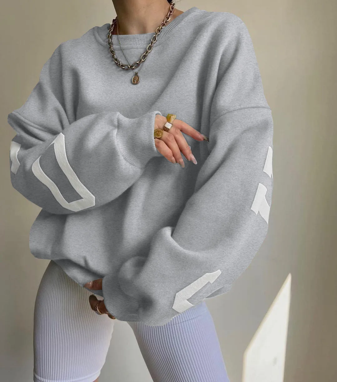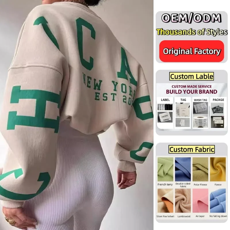 Chicago Custom Cotton Heavyweight Embroidery Letter Logo Print Crewneck Oversized Graphic Sweatshirt Winter Clothes for Women