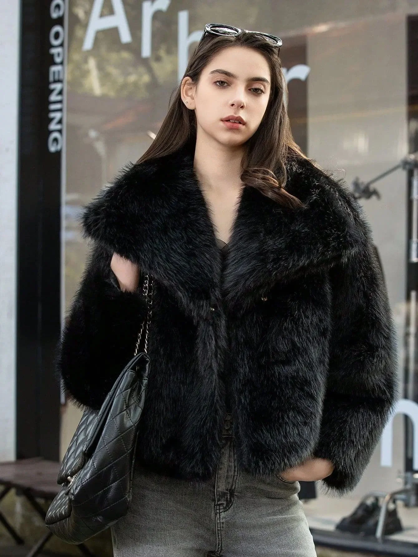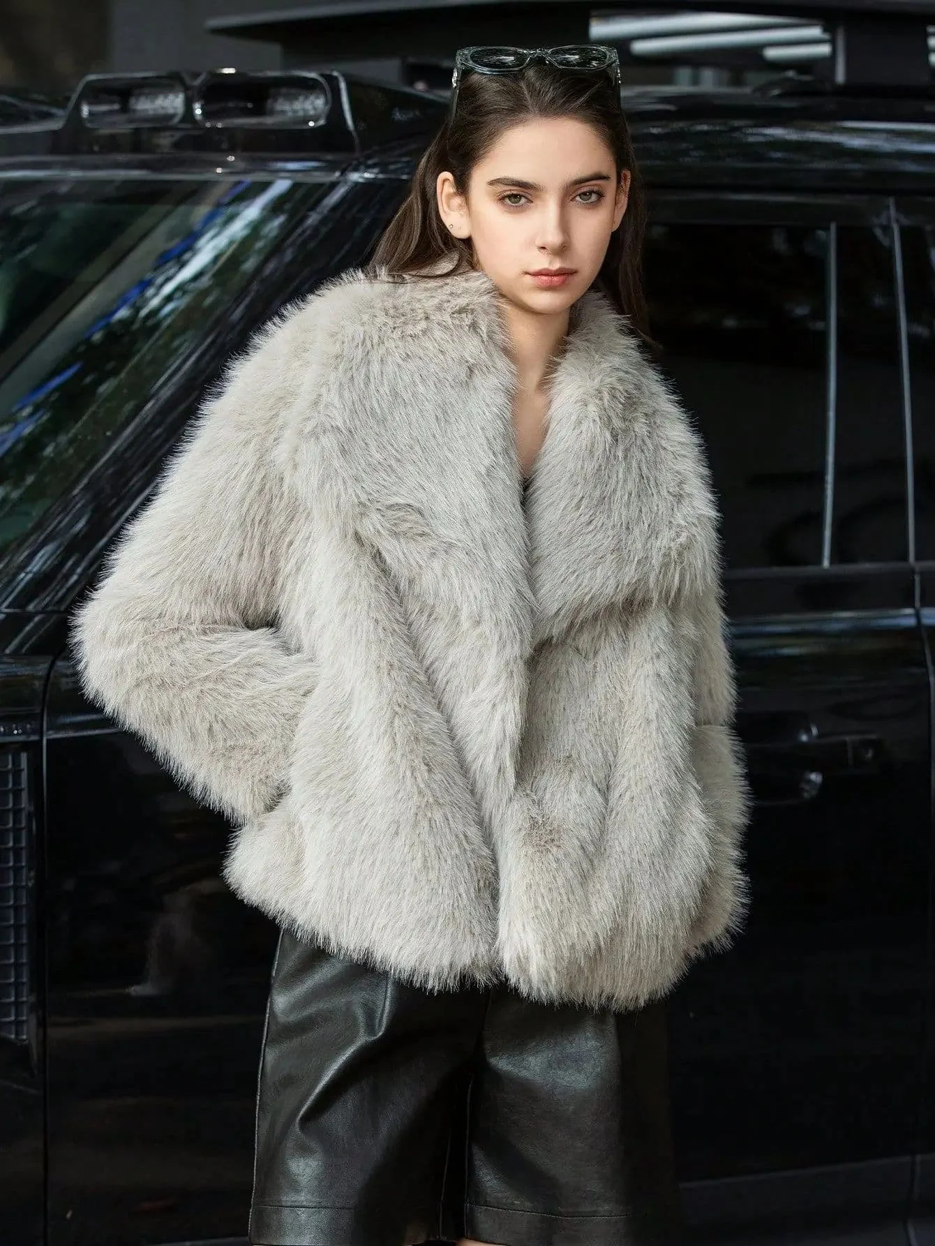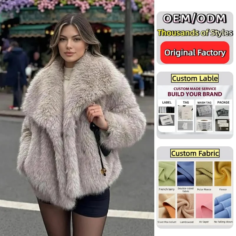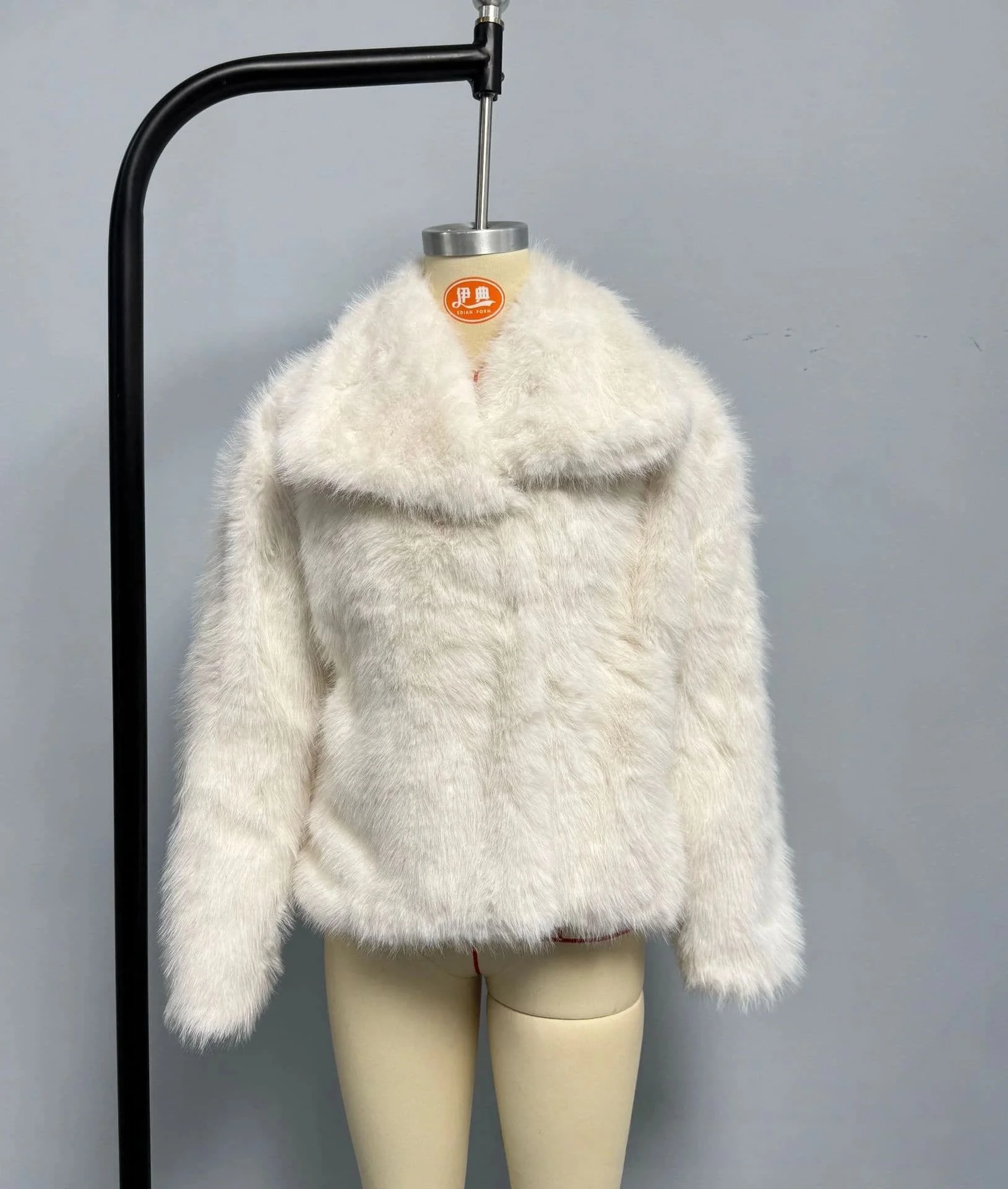 White Faux Fur Cropped Jacket Oversized Wide Lapel Collar Fluffy Coat Winter Outerwear Clothing for Women Ladies