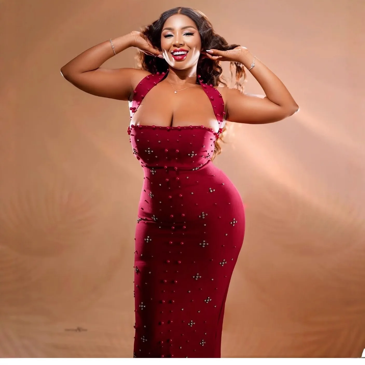 ZYHT 73957 Hot Selling Women Lady Printed Satin Beige Mermaid Fish Tail Floor Length Party Cocktail Evening Dress Gown