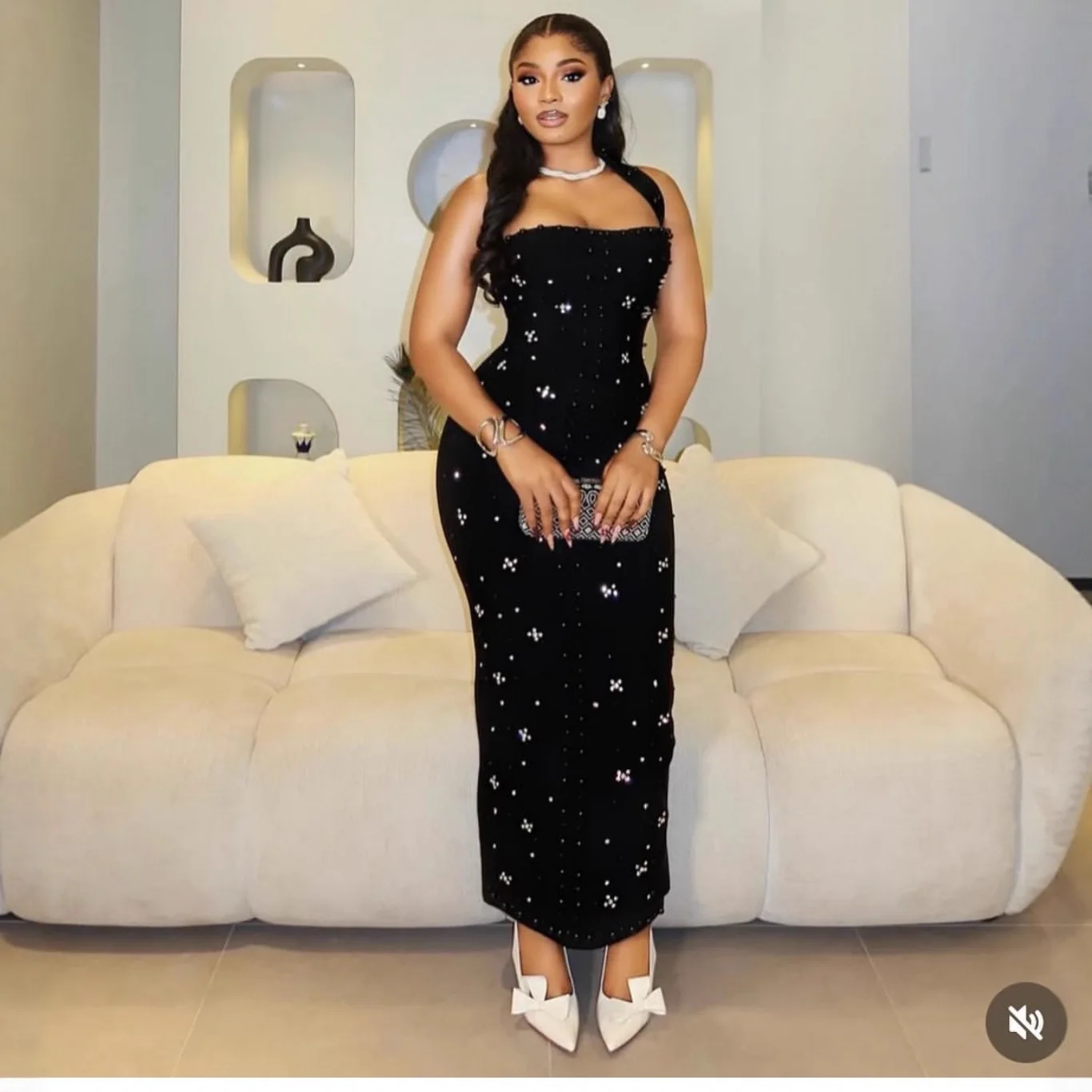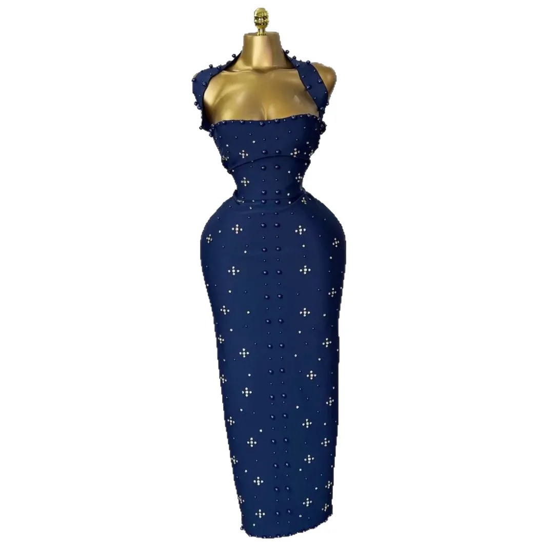 Vintage Anti-Static Cross-border European American Elegant One-shoulder Halter Neck High Slit Beaded Empire Waist Long Skirt