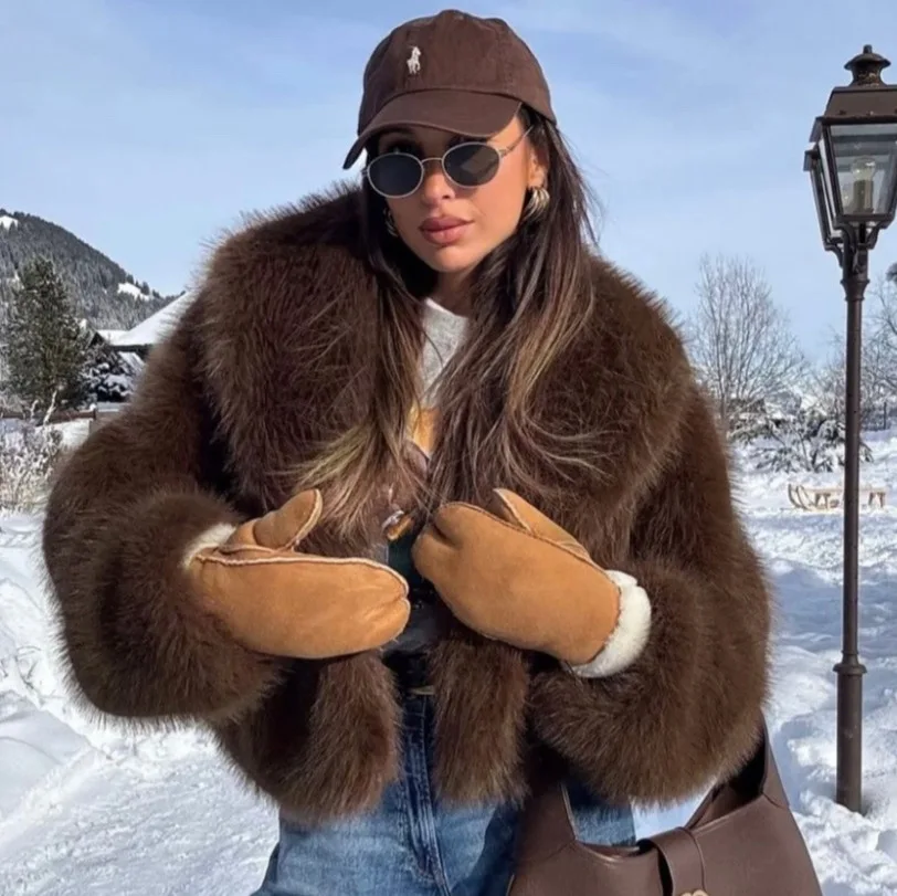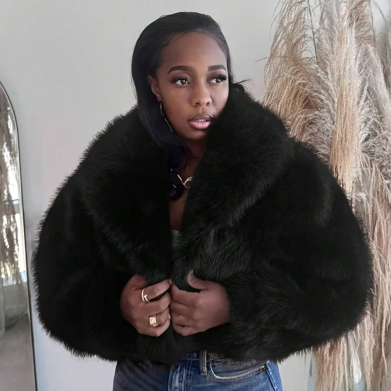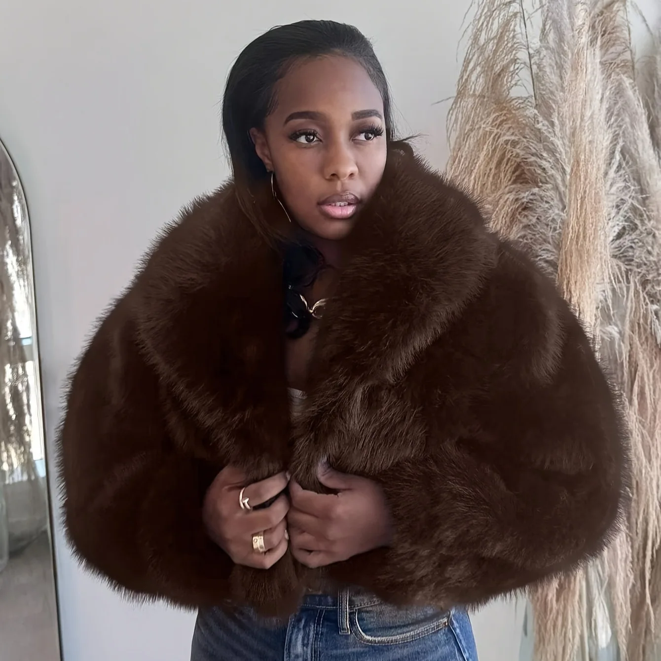 CN391303 Autumn Winter New Vintage Elegant Socialite Style Mandarin Collar Faux Fur Effect Polyester Fiber Short Poncho