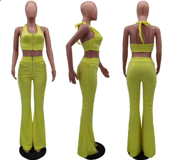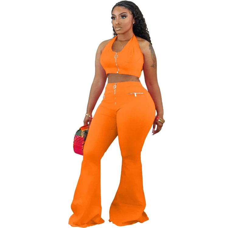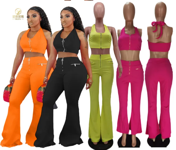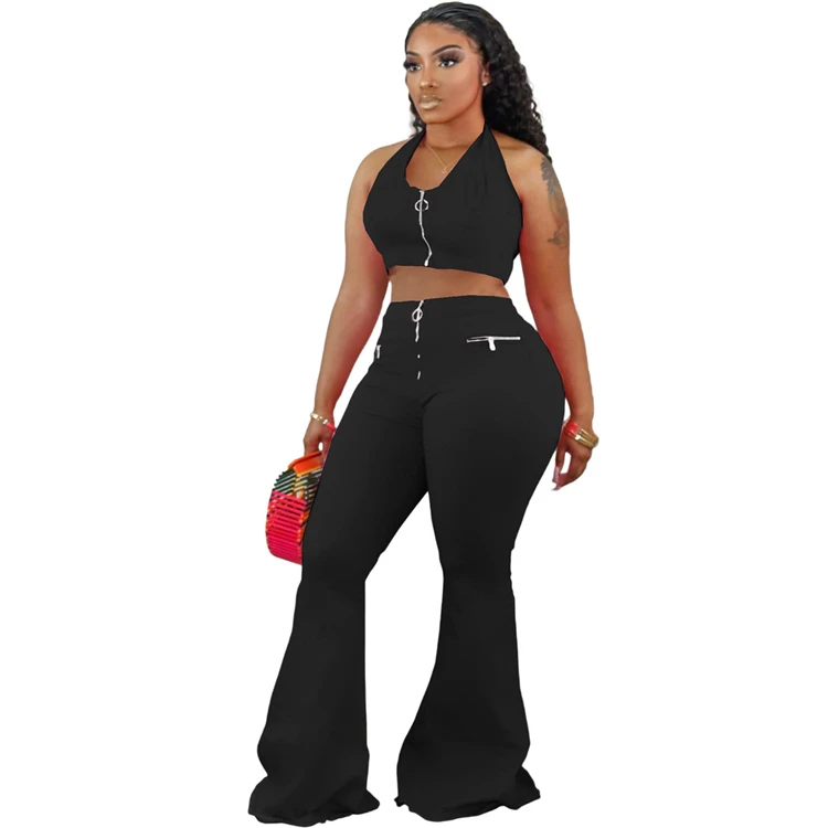 S-3XL Tracksuit Women Summer Solid Color Sleeveless Zipper Tank Baggy Flare Biker Joggers Plus Size Two Piece Pants Sets