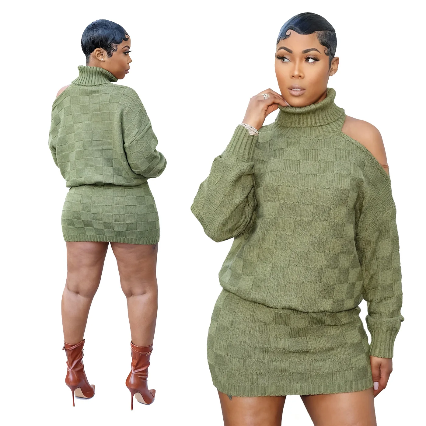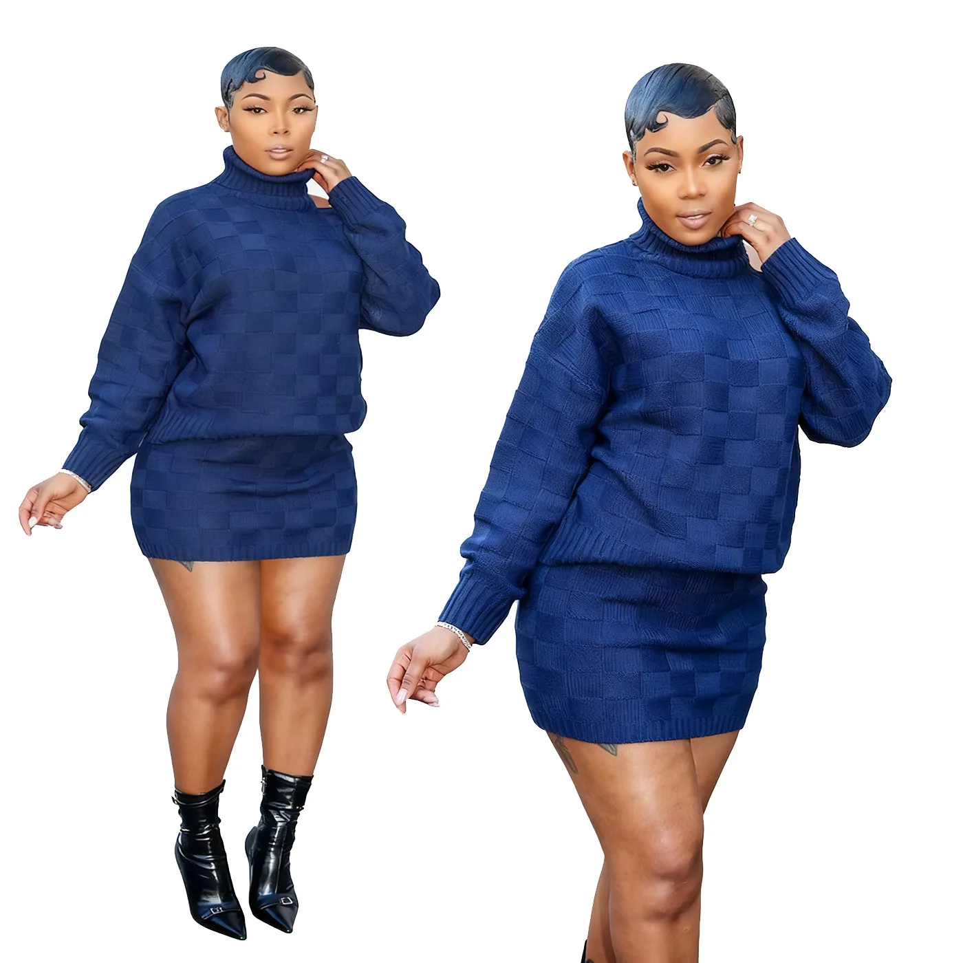 CN1353 Cross-Border Supply European and American Women's Clothing New Casual Plaid Knitted Knee Length Polyester Shirt