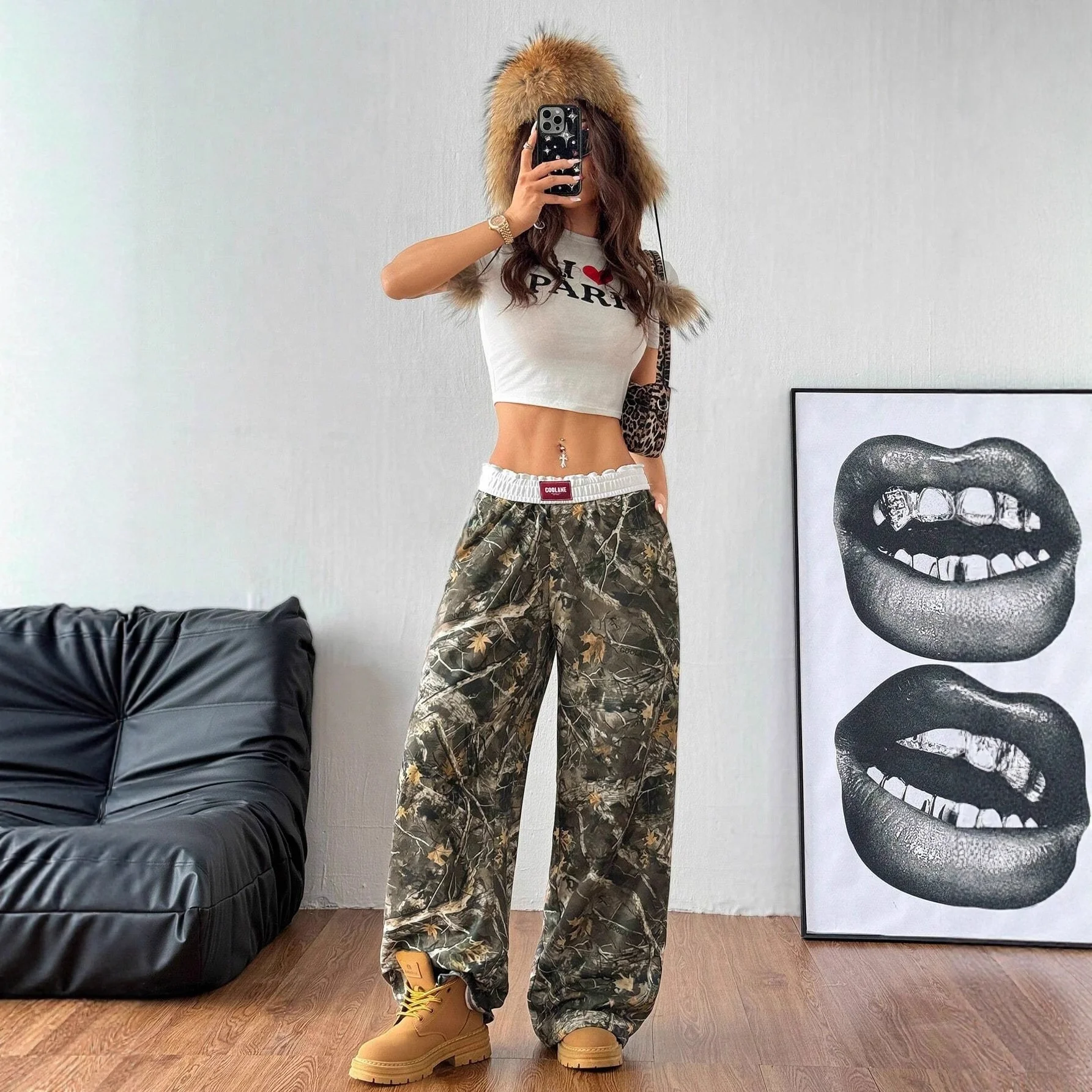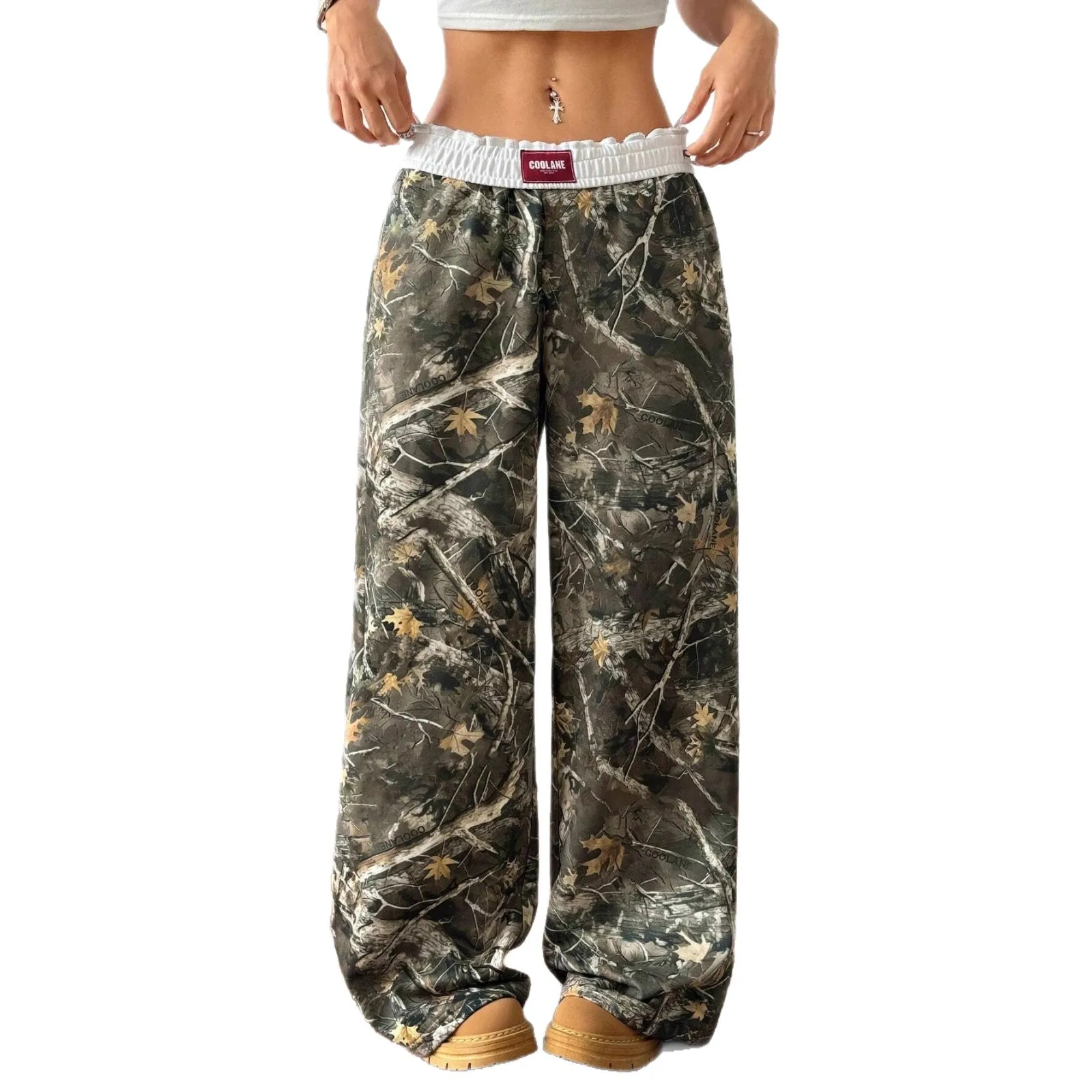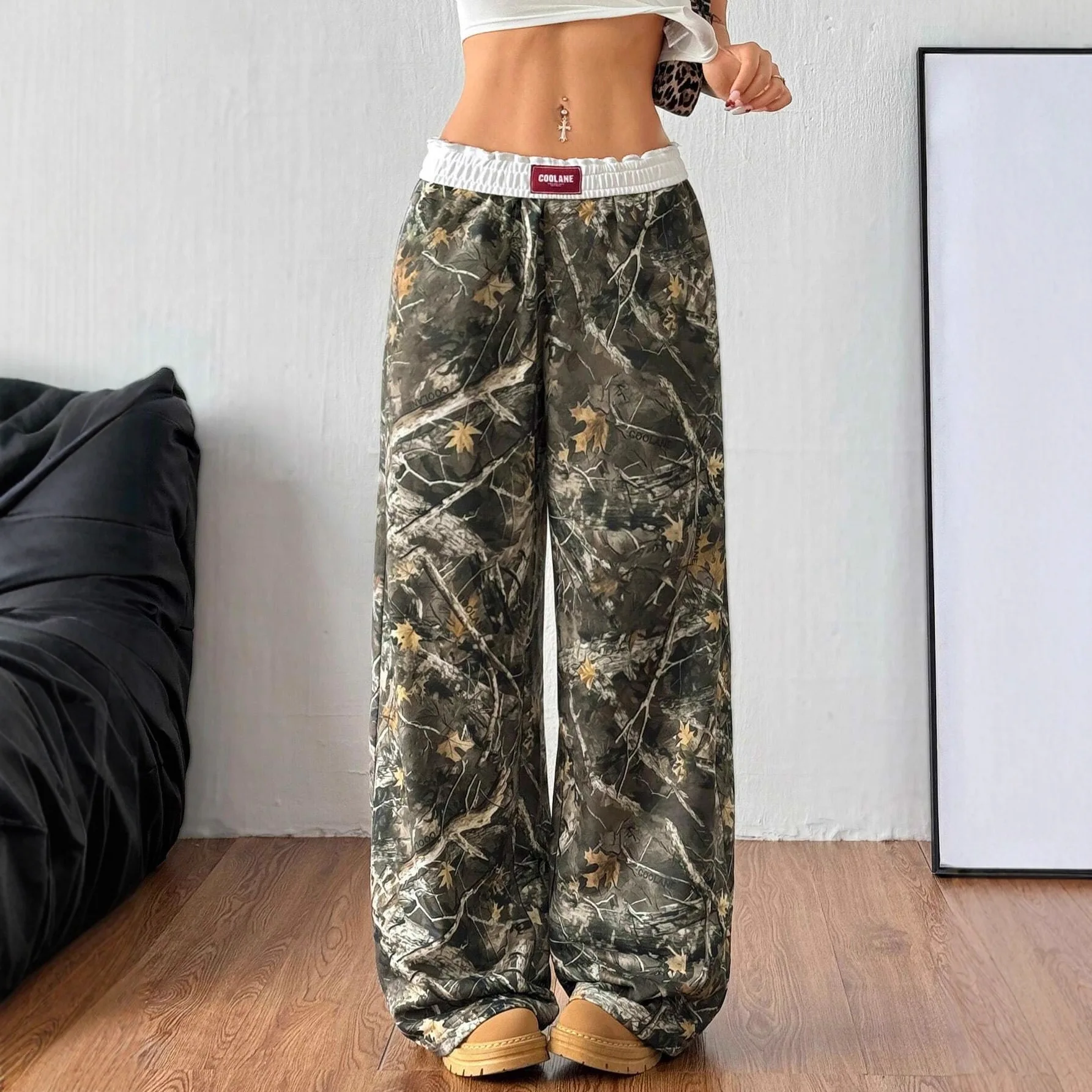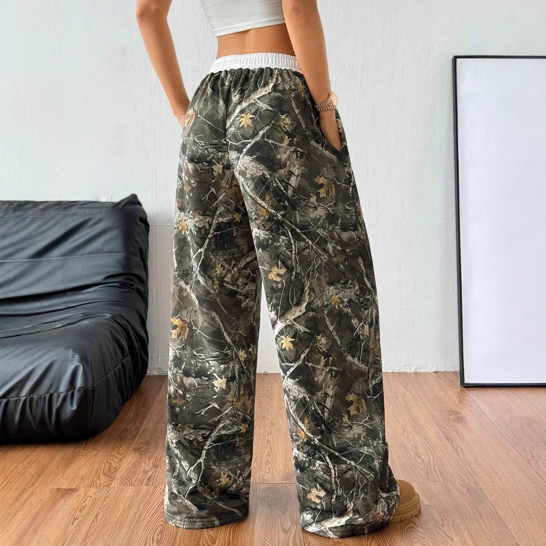 European American Women's Loose Flat Casual Pants New Cross-Border Fashion Ins Street Trend Hip-Hop Versatile Elastic Waist