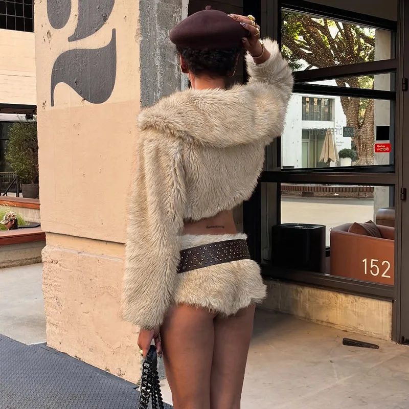 CN391 Winter New Women's Fashion Socialite Style Hairy Collar Button Long Sleeve Top Polyester Breathable