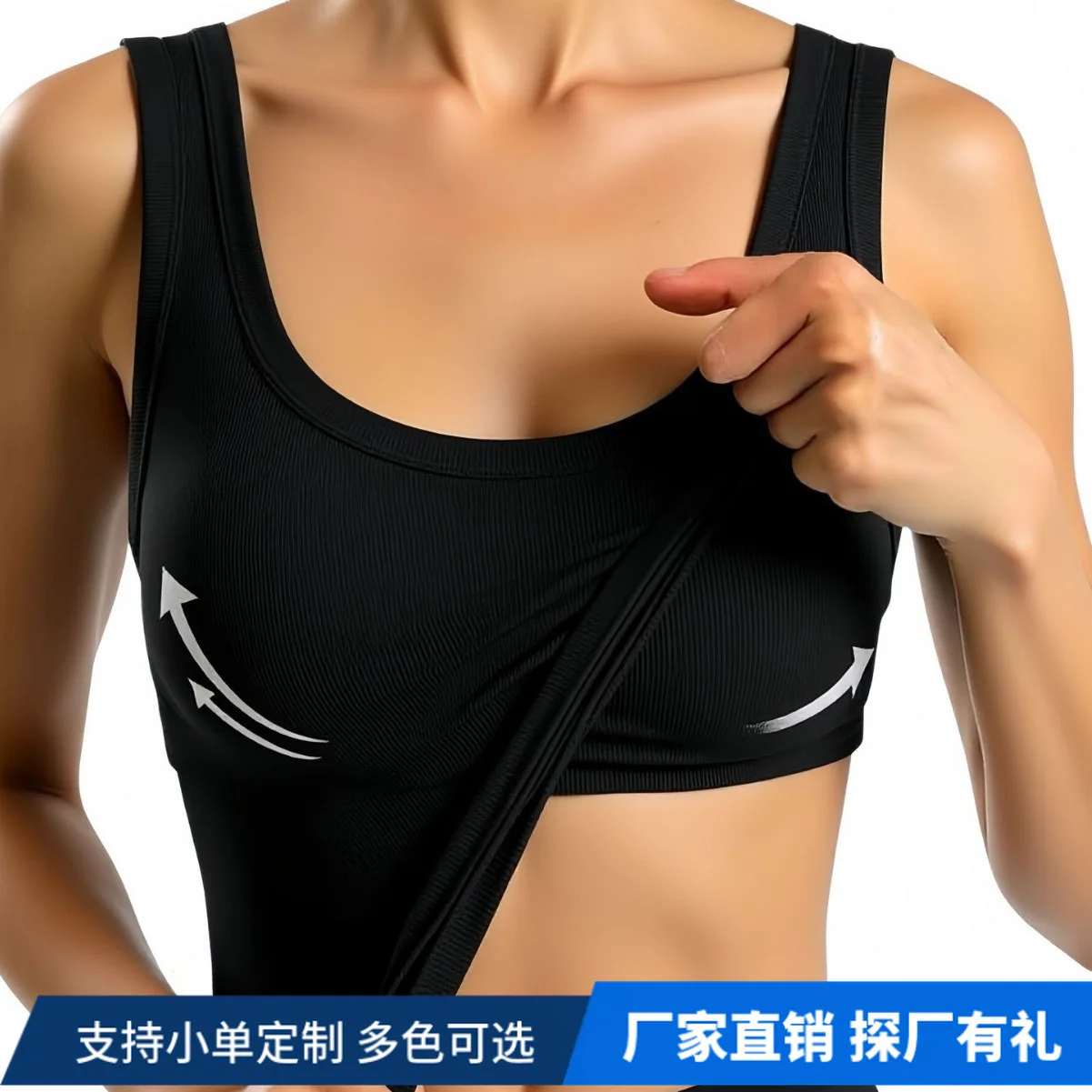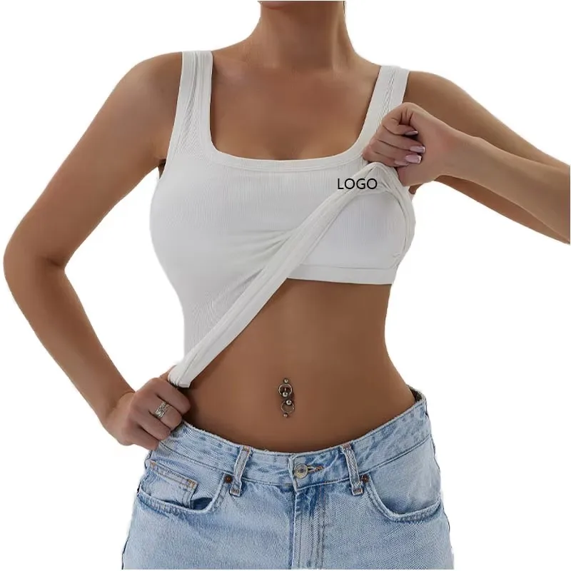Women's Ribbed Yoga Tank Top with Built-in Pad Wide Strap Sleeveless Slim Fit Inner Outer Wear Customizable Supported