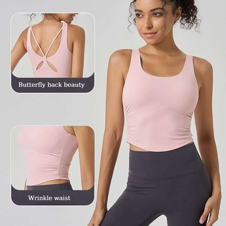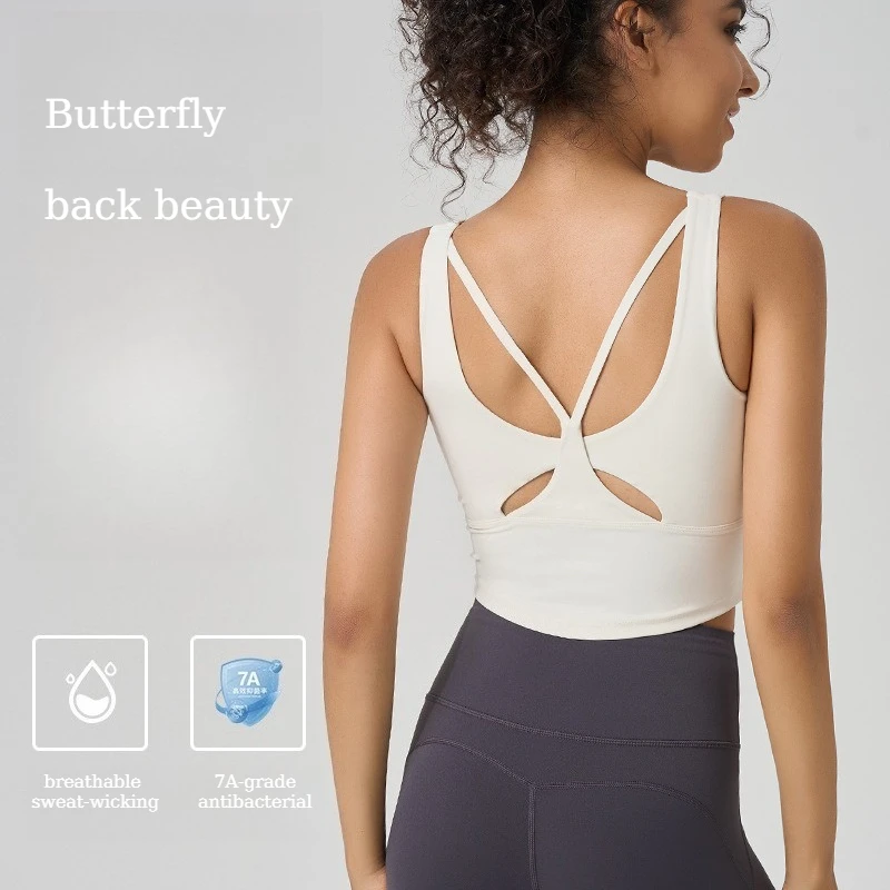 Butterfly Back Yoga Tank Top with Built-in Cup Women's Slim Waist Fitted Sports Bra for Outdoor Gym Workout Fitness Underwear
