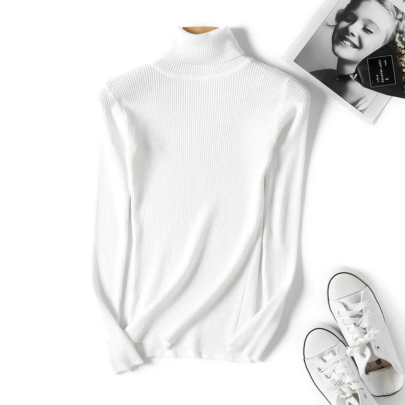 Ins Hot 17 Colors 2021 Winter Knitted Long Sleeve Turtleneck Women's Sweater Pullover Tops Oversized