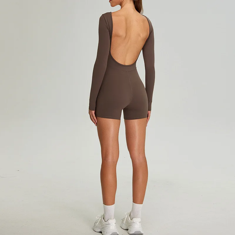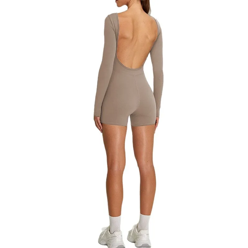 Women's Backless Cutout Yoga Onesie Long Sleeve High Elastic Butt-Lifting Gym Workout Bodysuit Quick-Dry Activewear