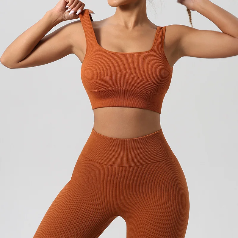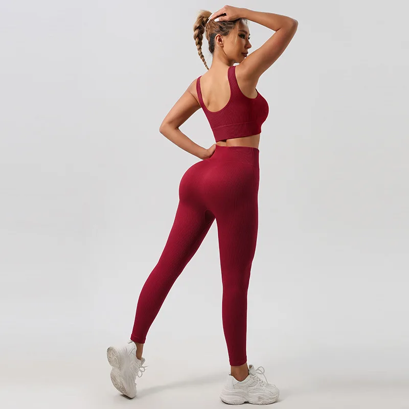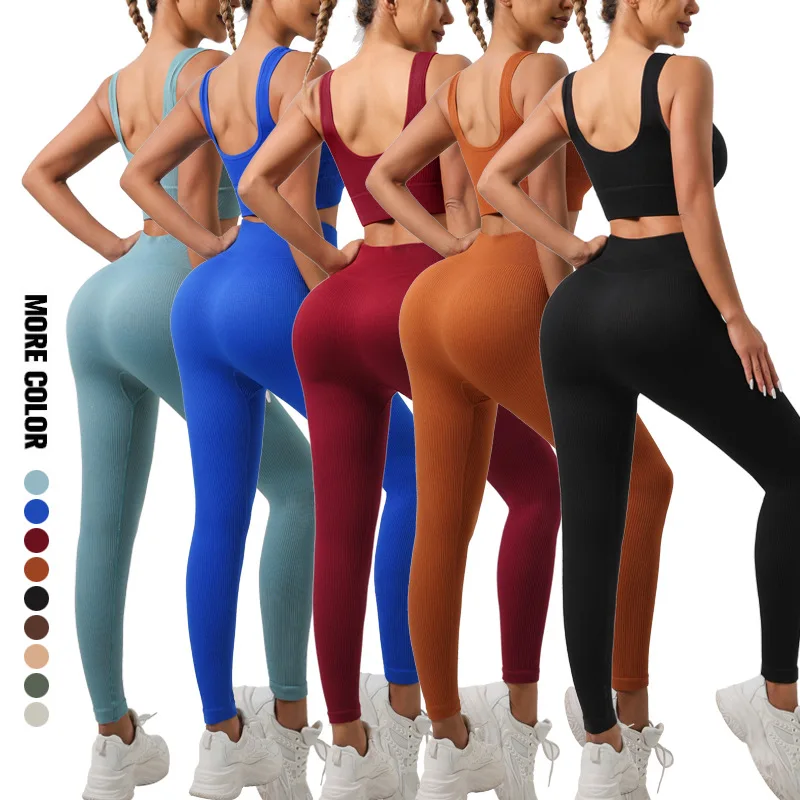 Women's Seamless Ribbed Yoga Set 2025 Hot Sale: Butt Lifting Quick Dry Sports Bra & Leggings 2-Piece Gym Fitness Activewear