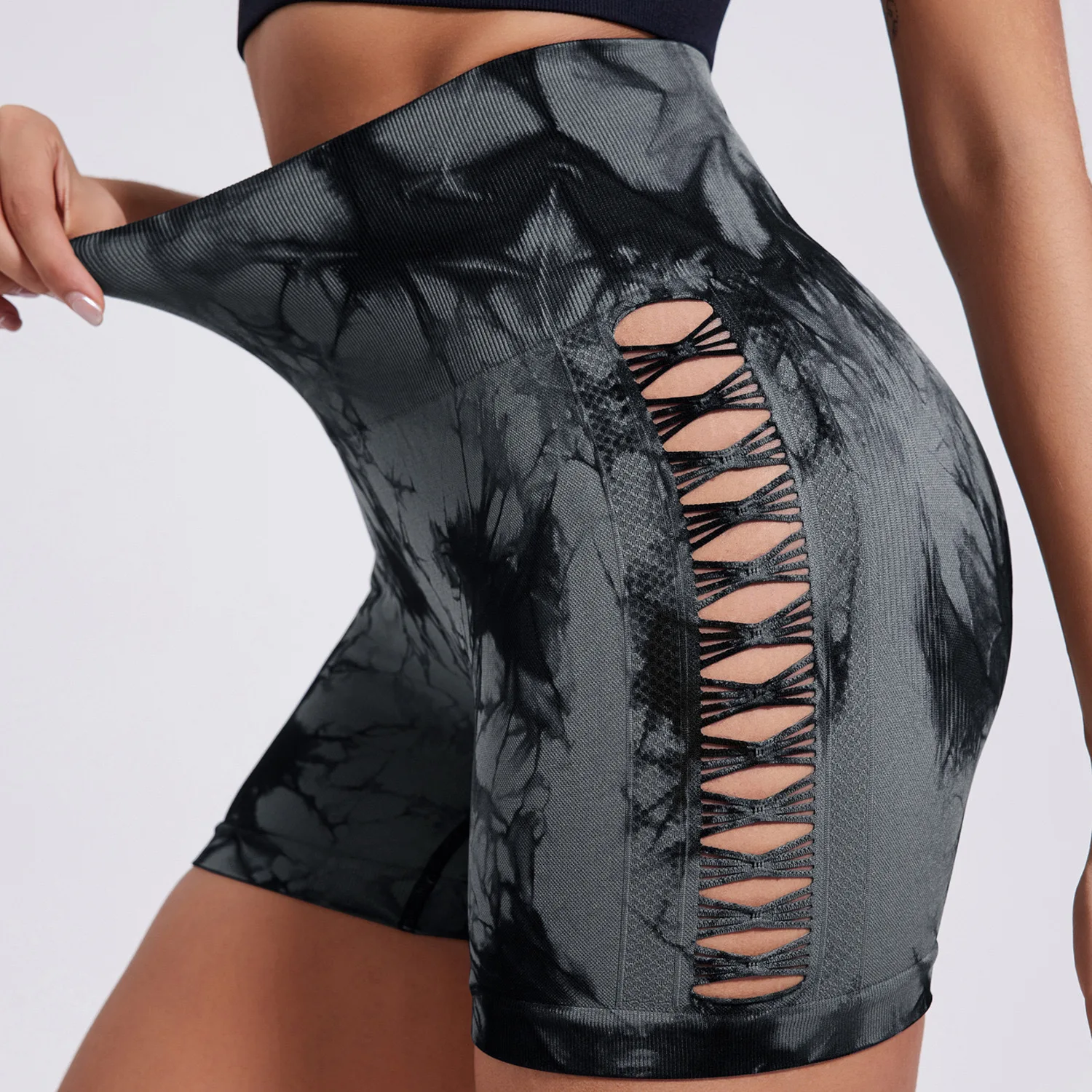 Tie dye women's yoga shorts with side hollow tight sports pants high elasticity and quick drying breathable fitness yoga pants