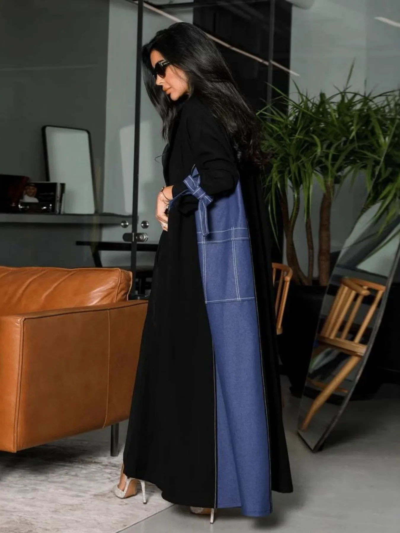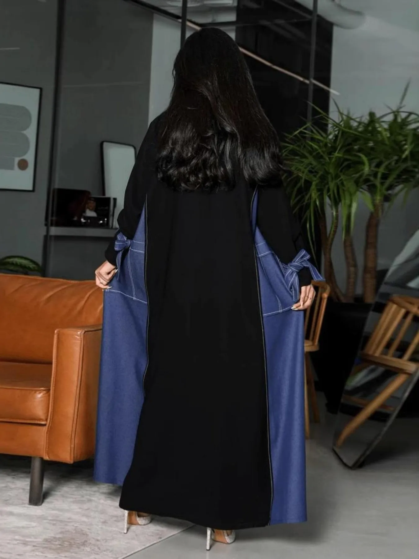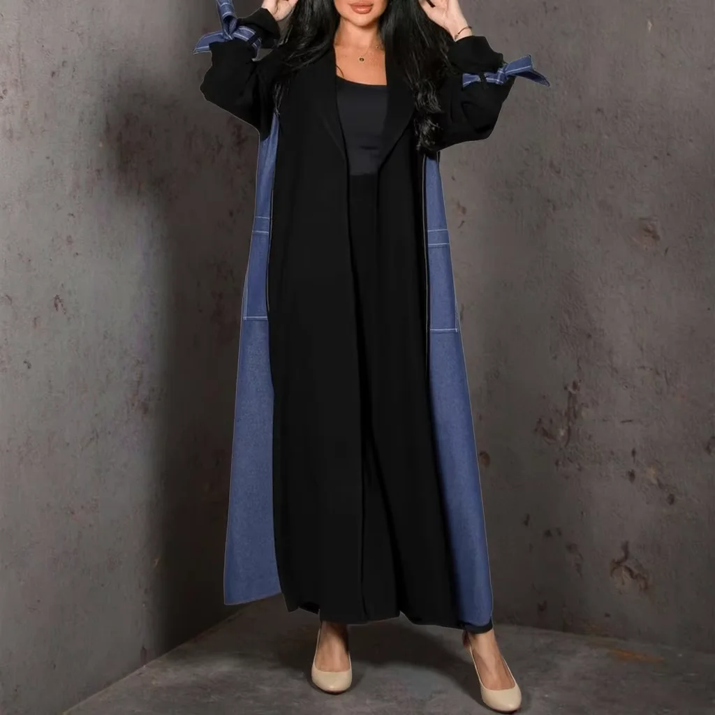 Muslim Women Patchwork Cardigan Blue Denim Kimono Open Abaya Dress Women Islamic 2025 Modeste Doubai Musulmane Abaya Robe Femme