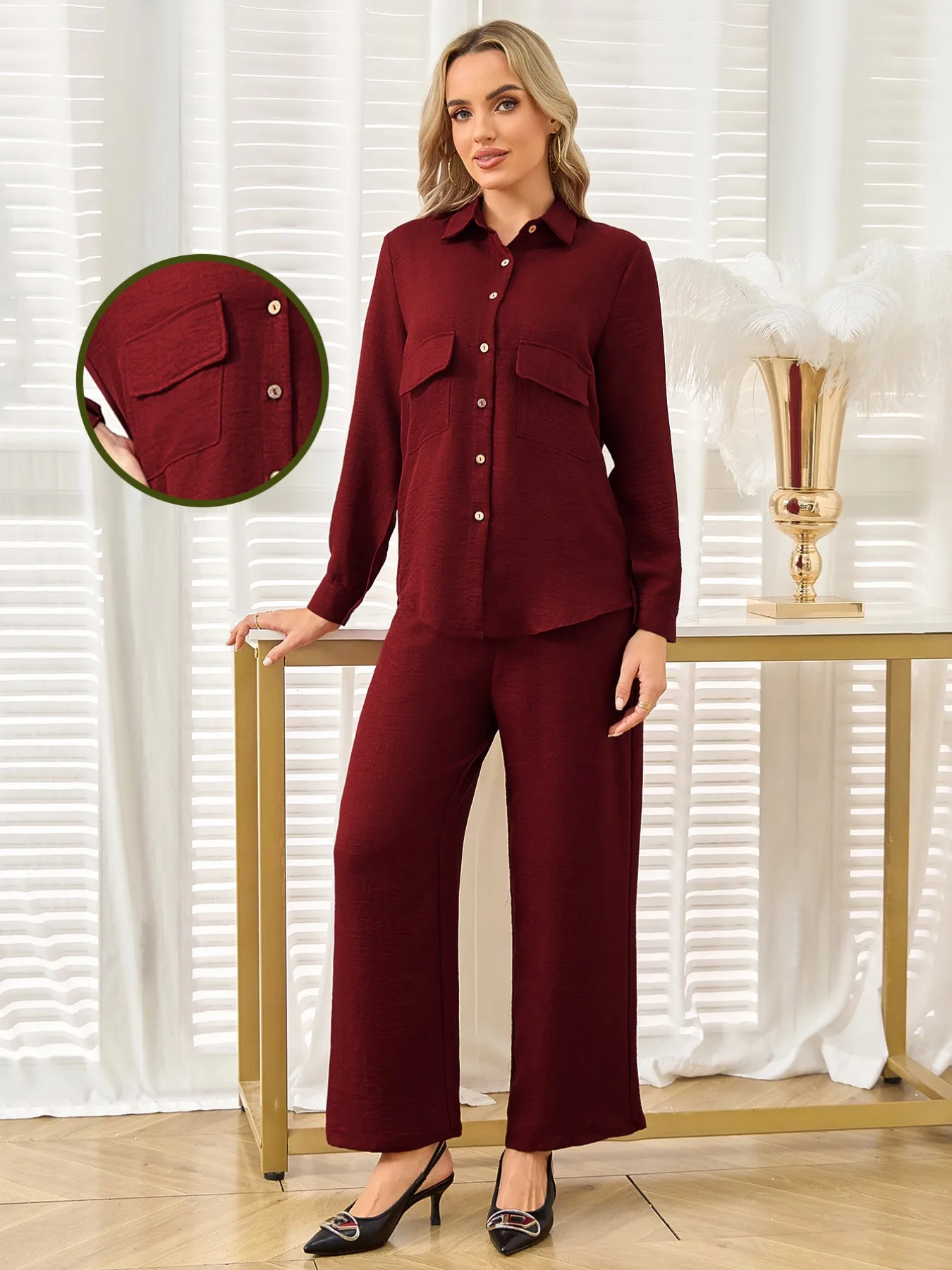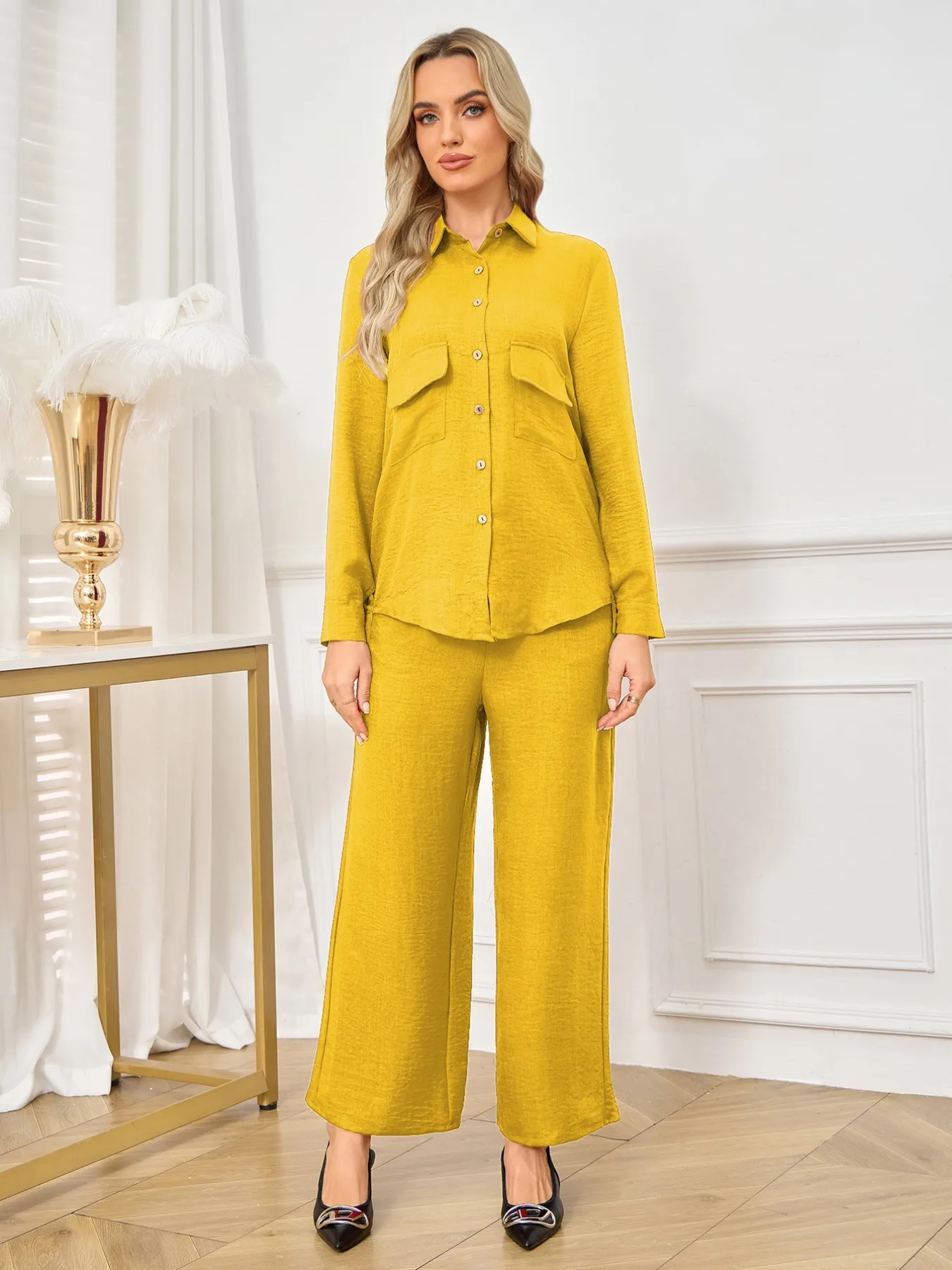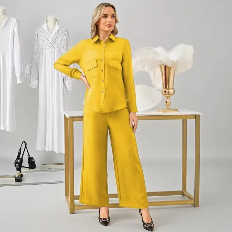 Middle East Women Muslim Clothes Suit Stylish Long Sleeve Shirt & Trousers Elegant Casual Office Ladies Islamic Two-Piece Suit
