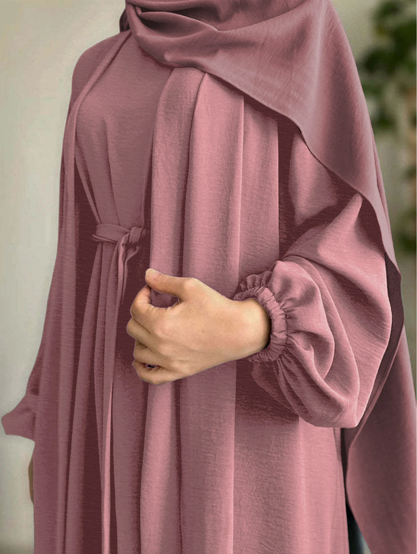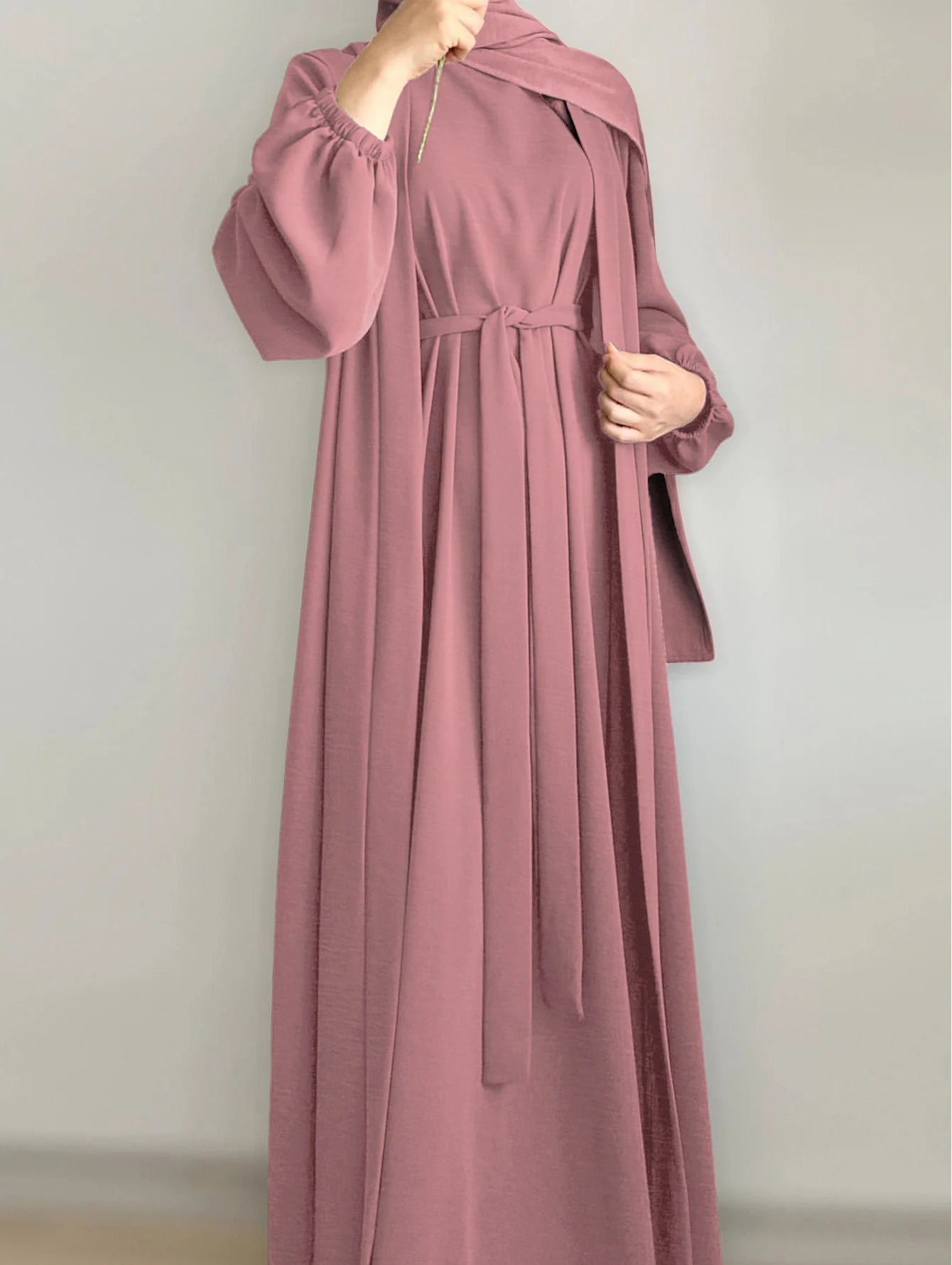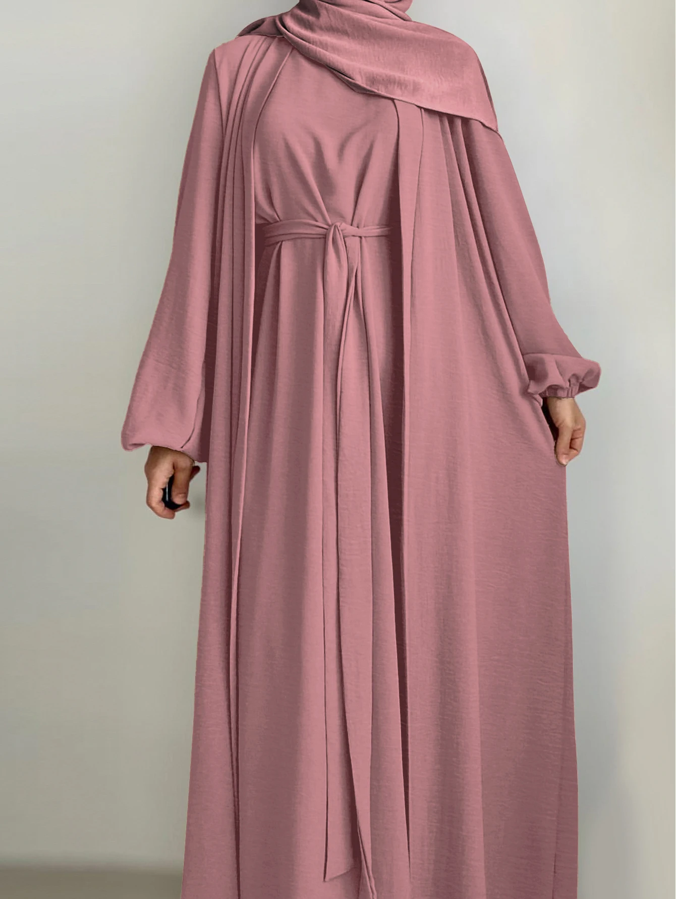 Wholesale Custom Middle Eastern Muslim Robe Women's High Waist Pleated Loose Long Lantern Sleeve Dress 2 Piece Abaya Set