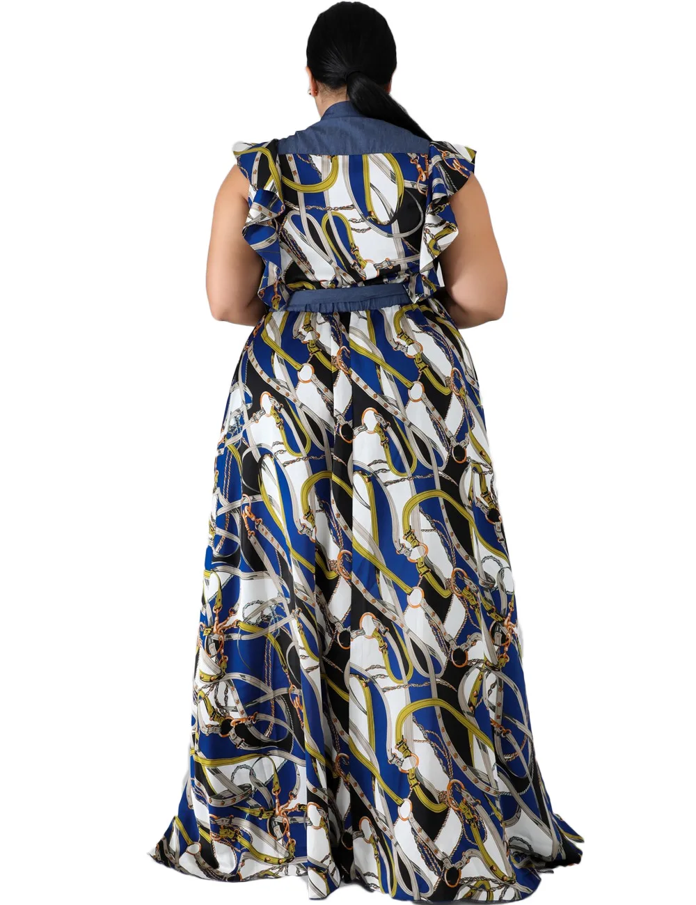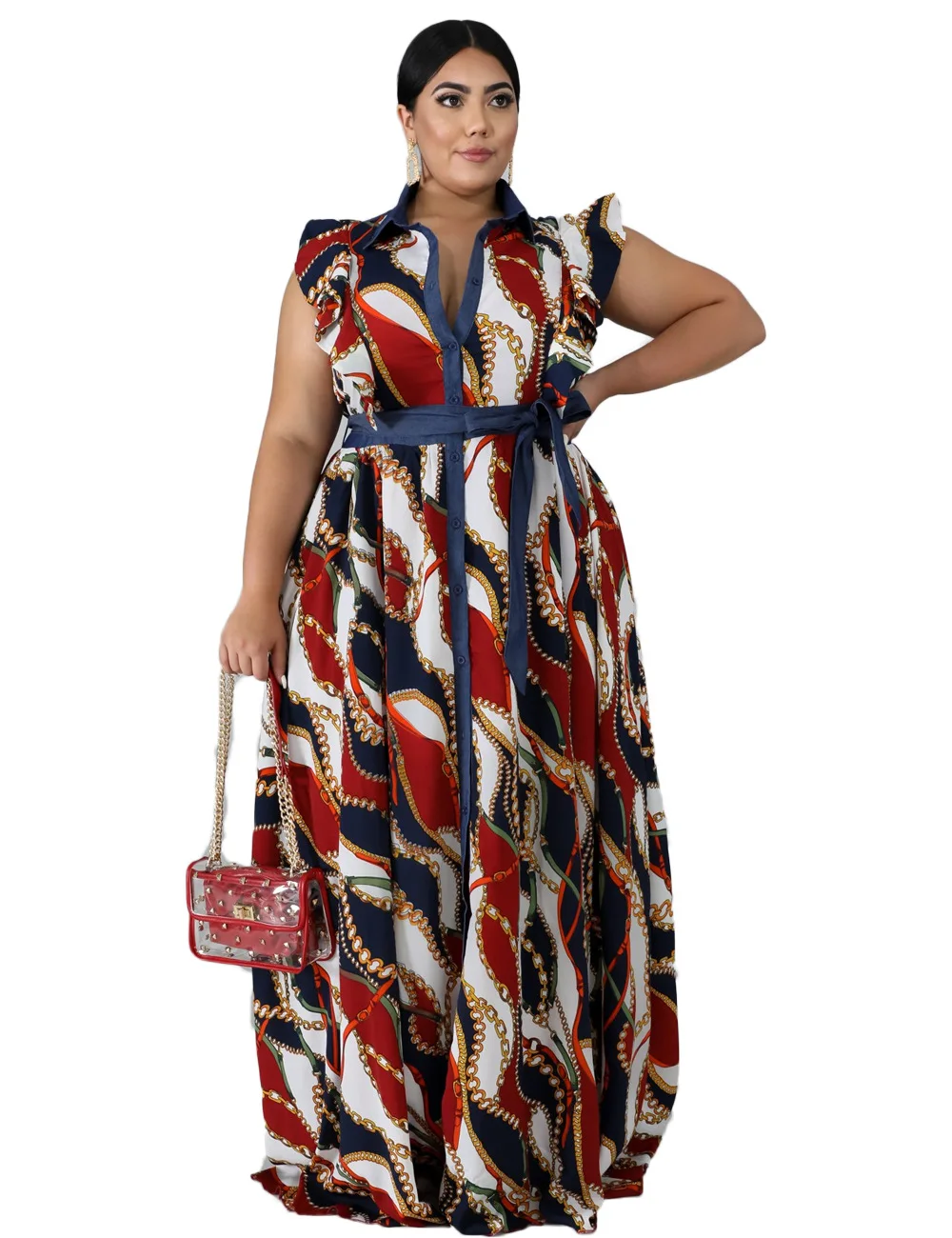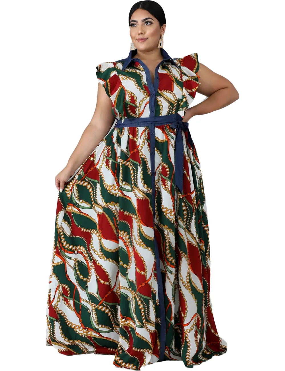 Fashion Summer Vintage Floral Dresses Women Casual Wax Printing Long Dress Formal Plus Size Casual Dresses