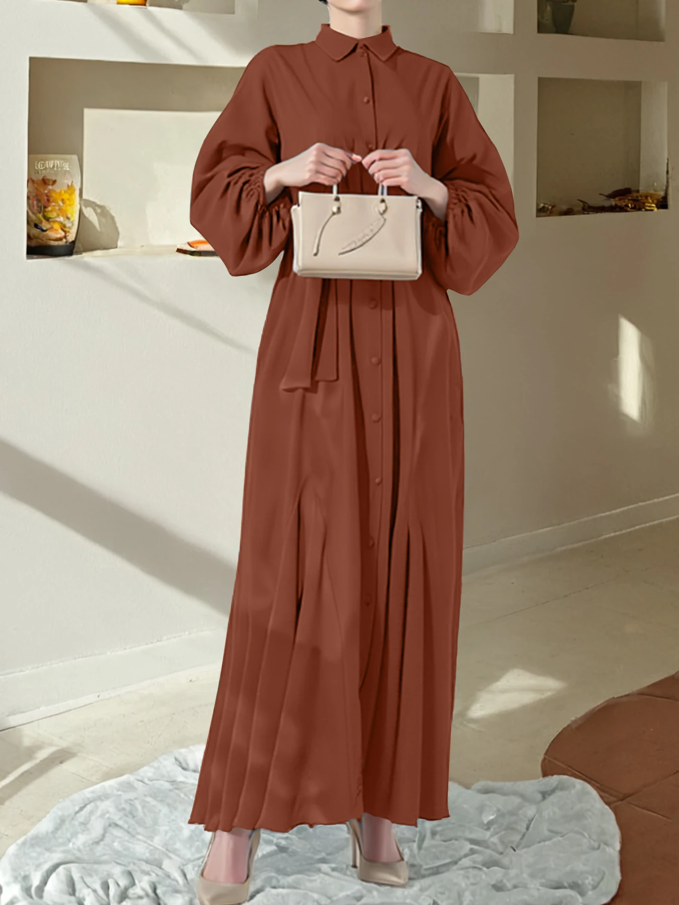 Luxury Custom Abaya for Ladies Turkish Women's Islamic Clothing with Ruffled Sleeves Modest Style Polyester Abayas