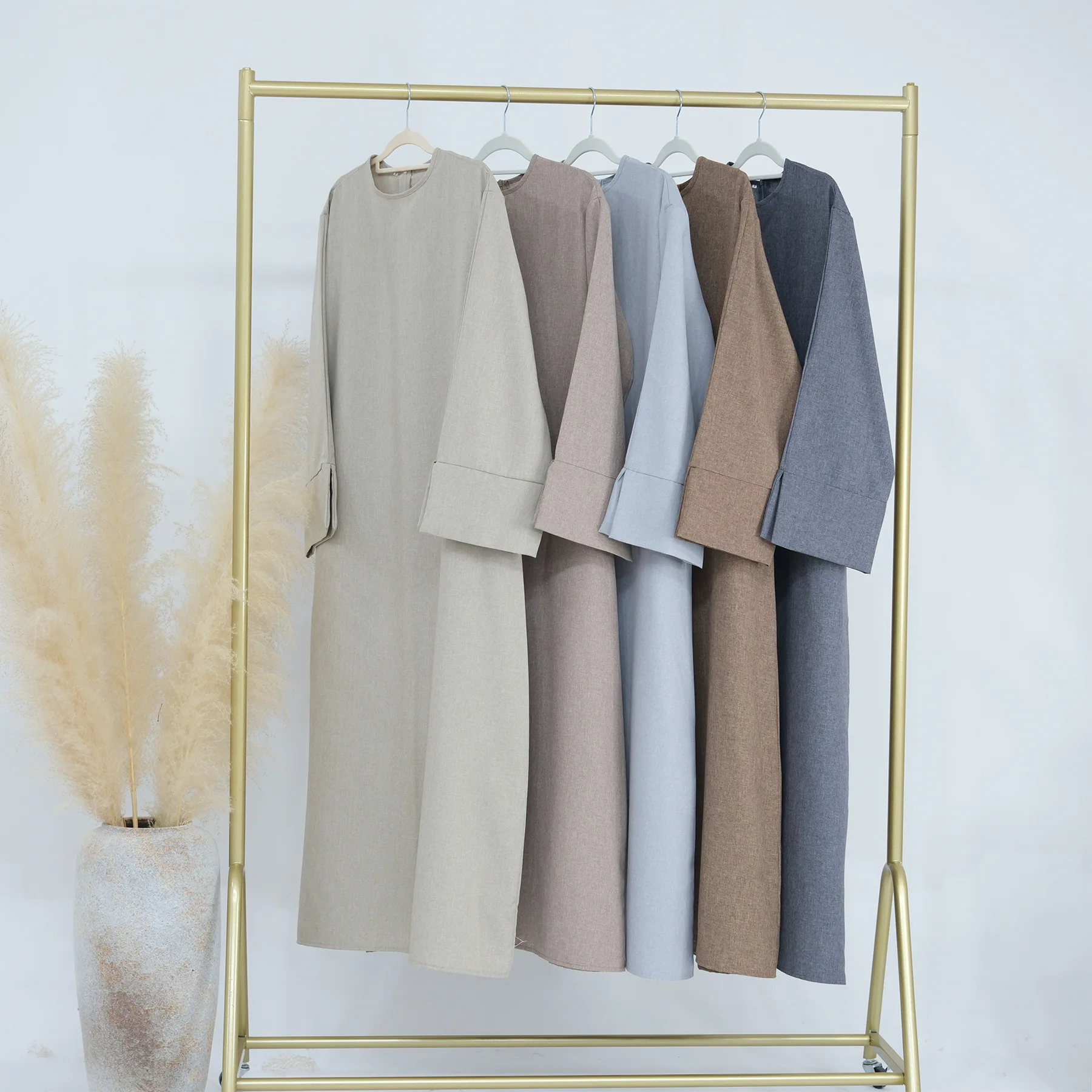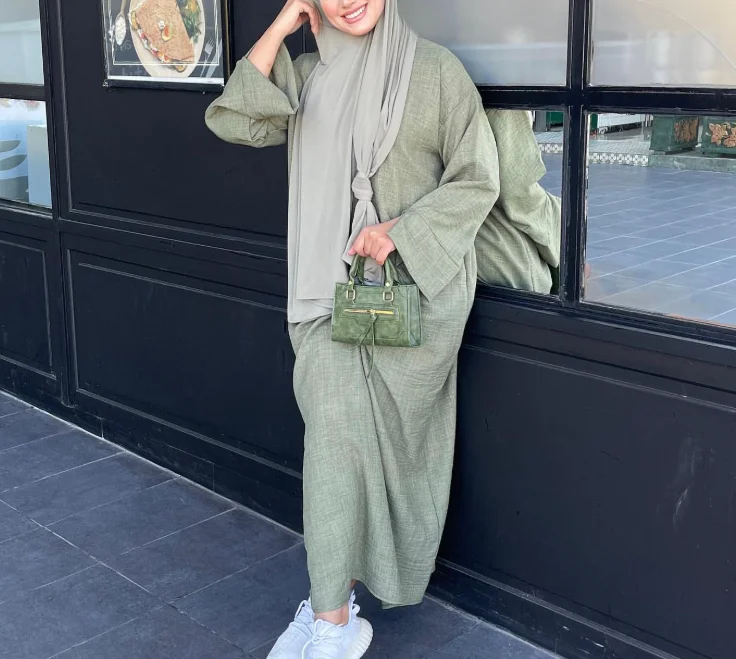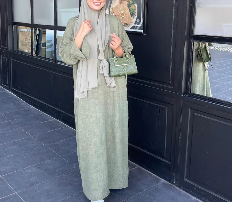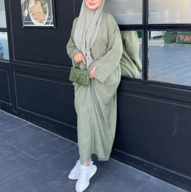 Elegant Solid Color Long Sleeve Gown Loose Casual Plain Dress Plus-size Muslim Turkish Women's Dress