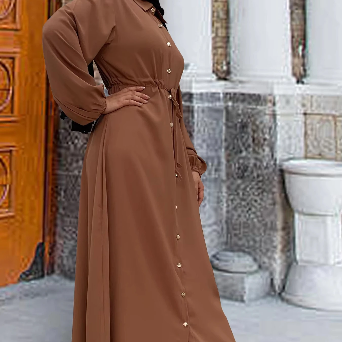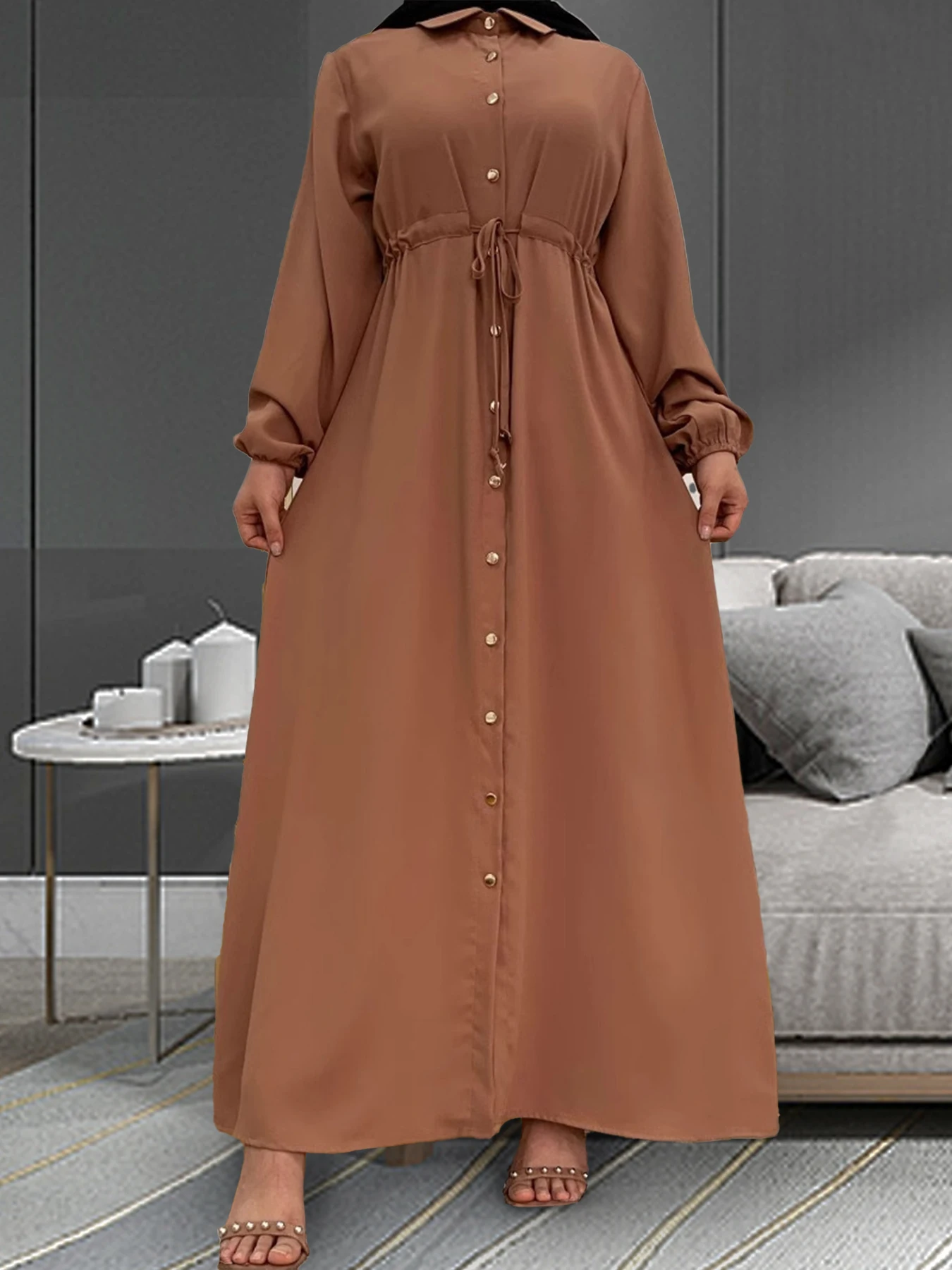 Modest Women Robe Solid Color Long Simple Dress for Muslimah Daily Wear Full Buttons Design Abaya Muslim Dress