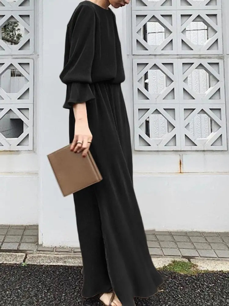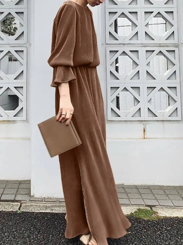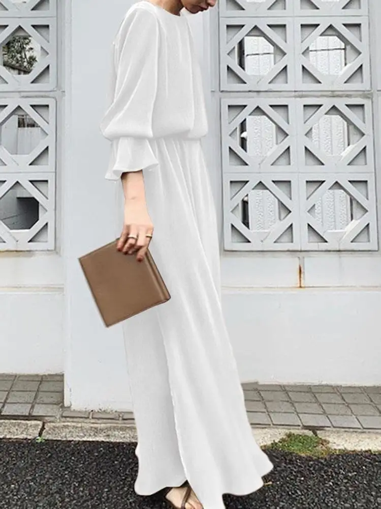 ZYHT 73849 European Wholesale Fashion Casual One Shoulder Ruched Maxi Dress Side Slit Pleated Long Sleeve Dresses for Women