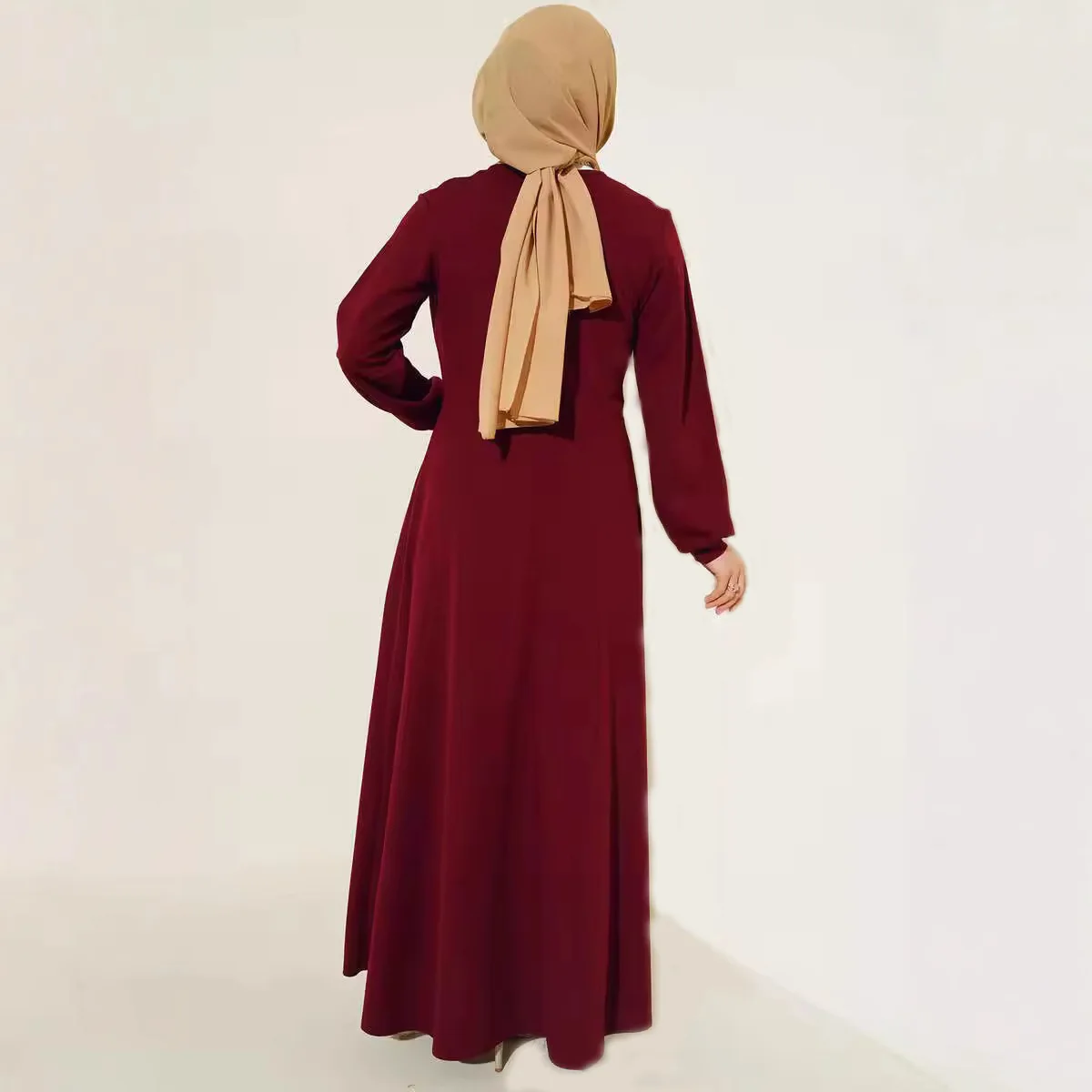 Spring New Fashion Elegant Solid Color Long-Sleeved Abaya Dress Custom Polyester Traditional Muslim Women Clothing