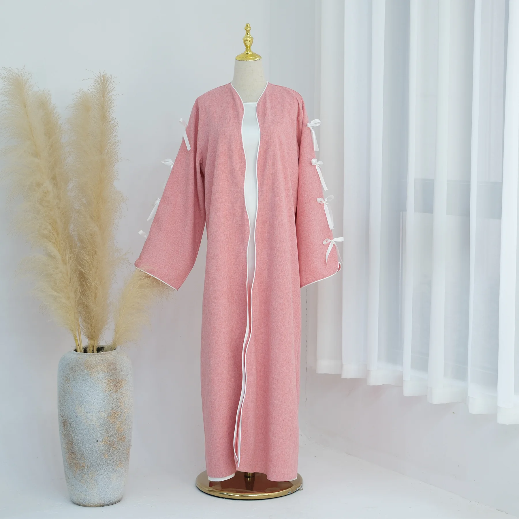 Butterfly Pink Satin Traditional Muslim Clothing & Accessories-Abaya Silk Kaftan Dress with Hijab Robe Abaya Dubai