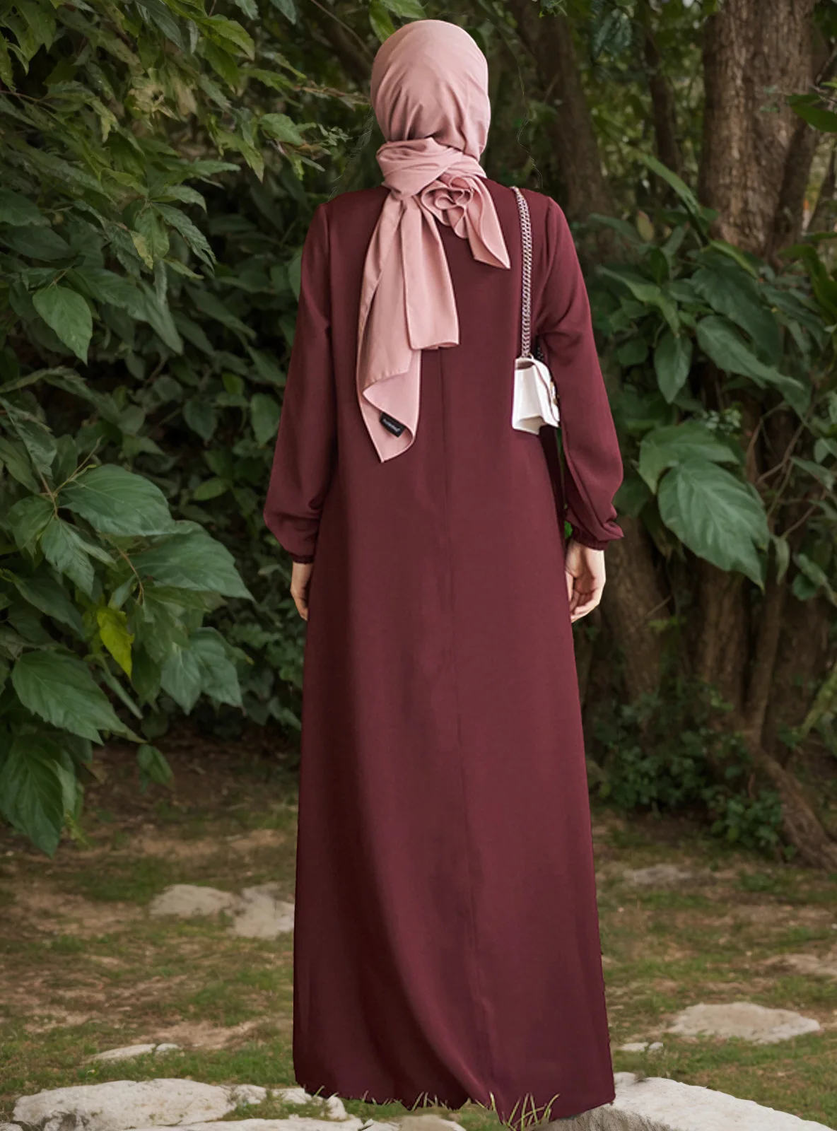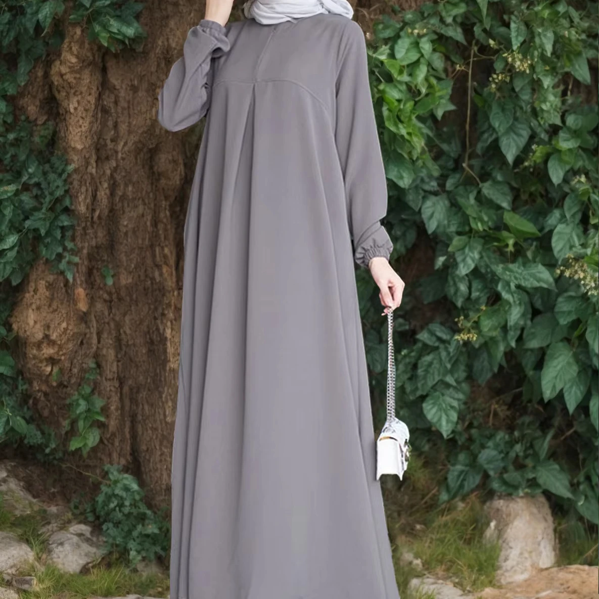 Long Sleeve Muslim Modest Dress for Middle East Southeast Asian Casual Crepe Knitted Fabric Decorated Print Inspired Arab Abaya