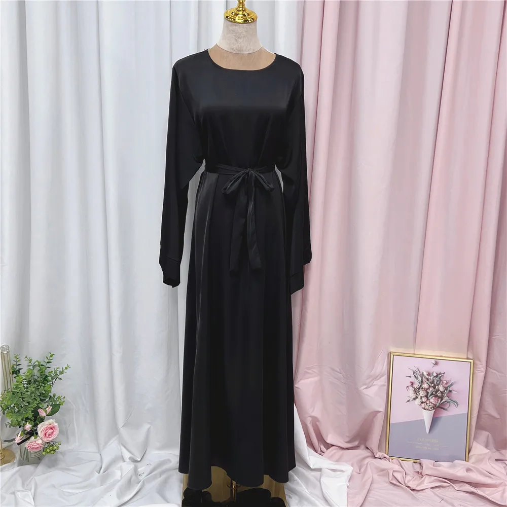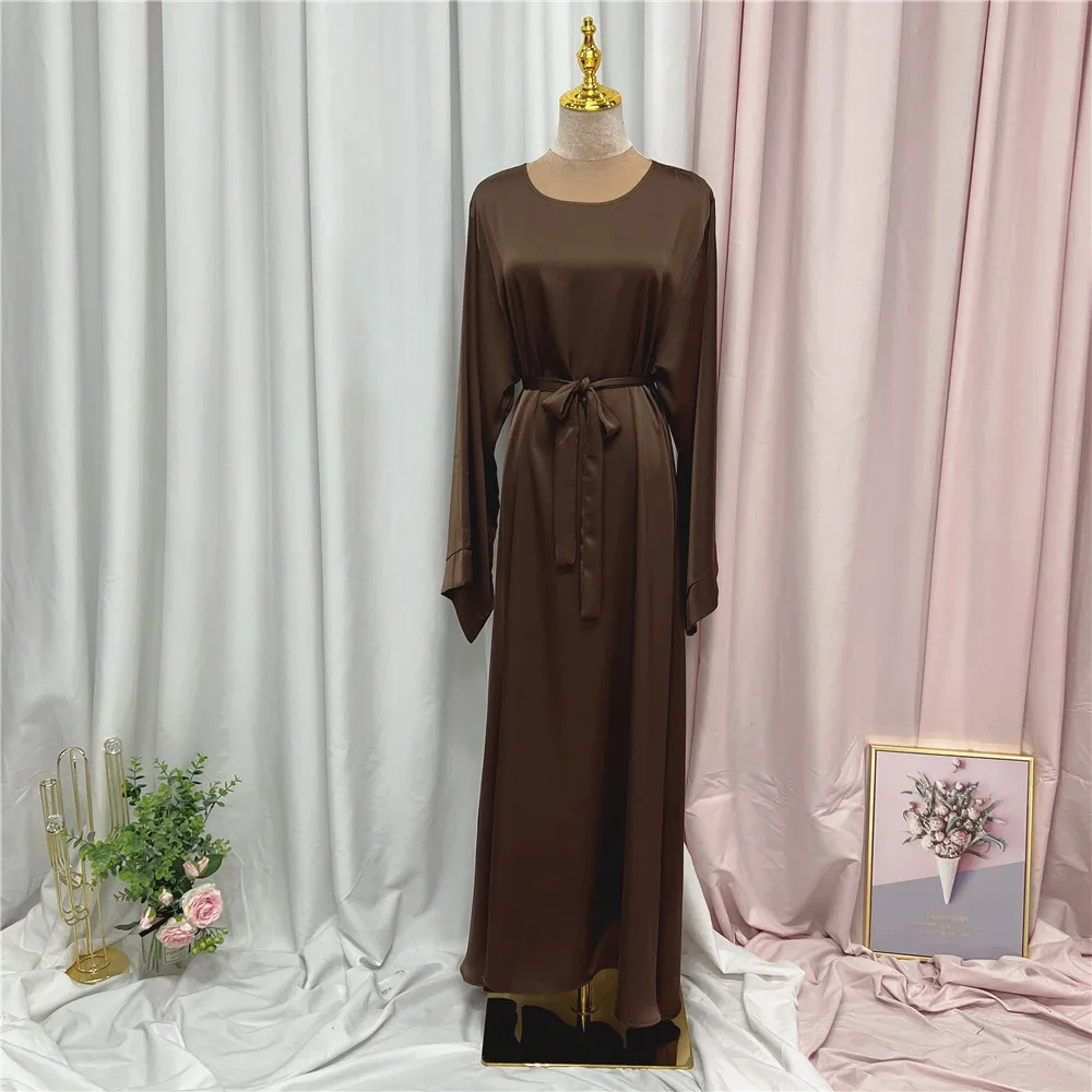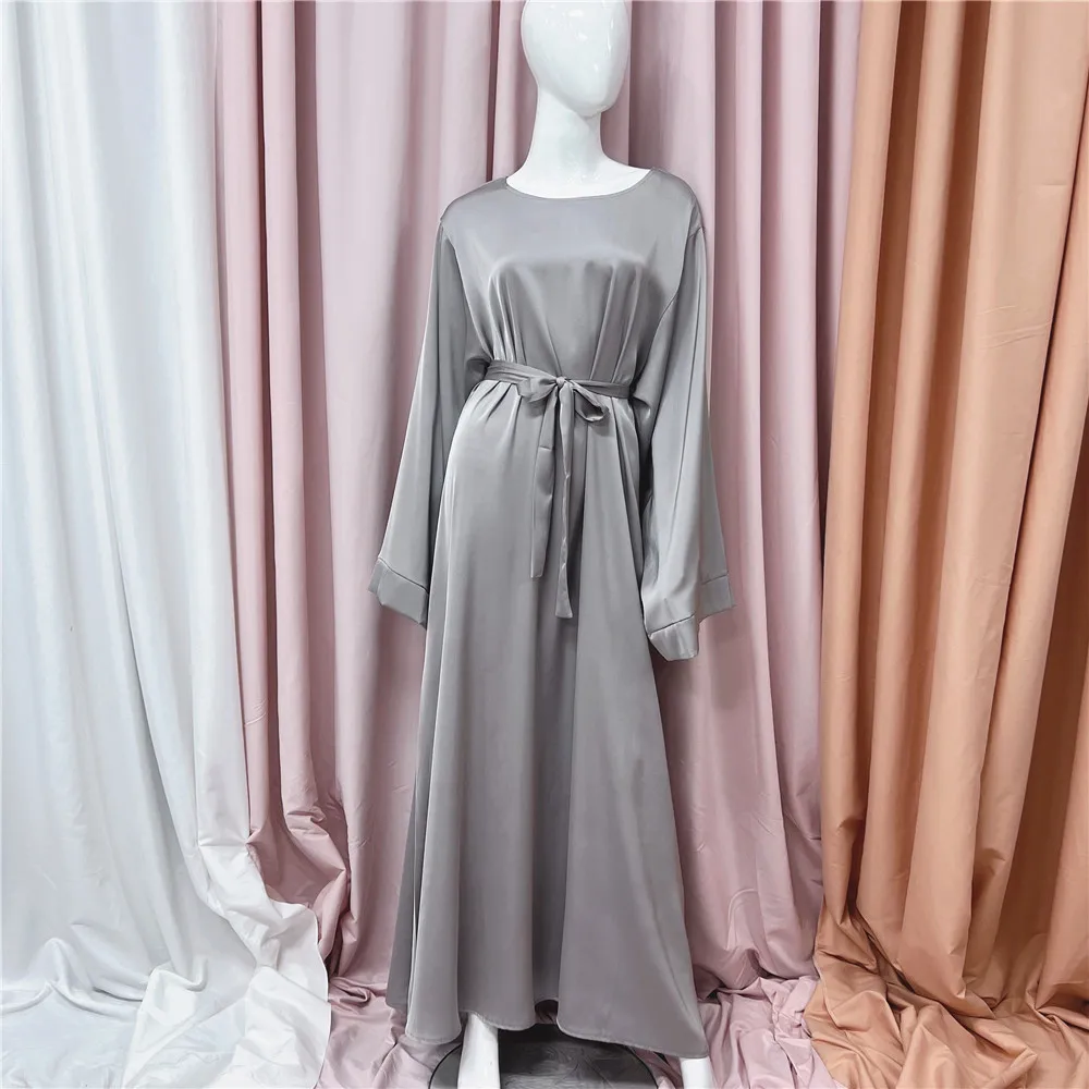 Women's Cross-Border Muslim Abaya Simple Robe Dress Casual Loose Lace-up Outing Plus Size Summer Polyester Abaya Dress
