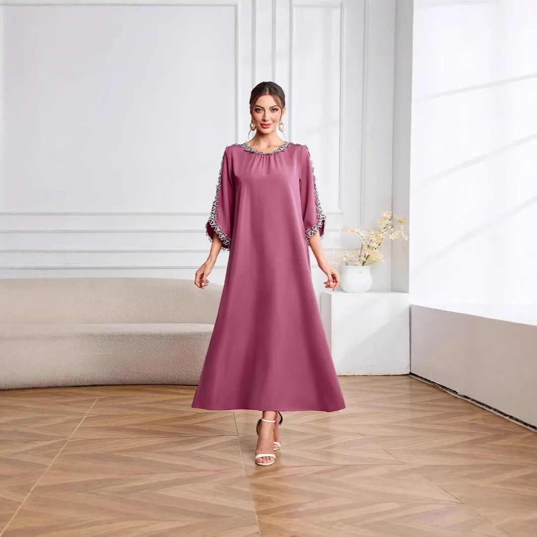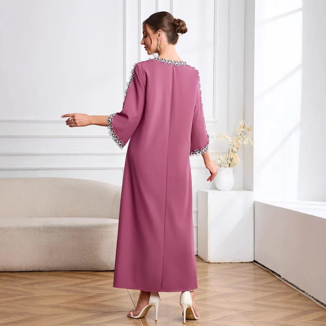 Embroidered Summer Abaya Dress for Muslim Middle Eastern Women Long Dubai Ethnic Gown Traditional Muslim Dress