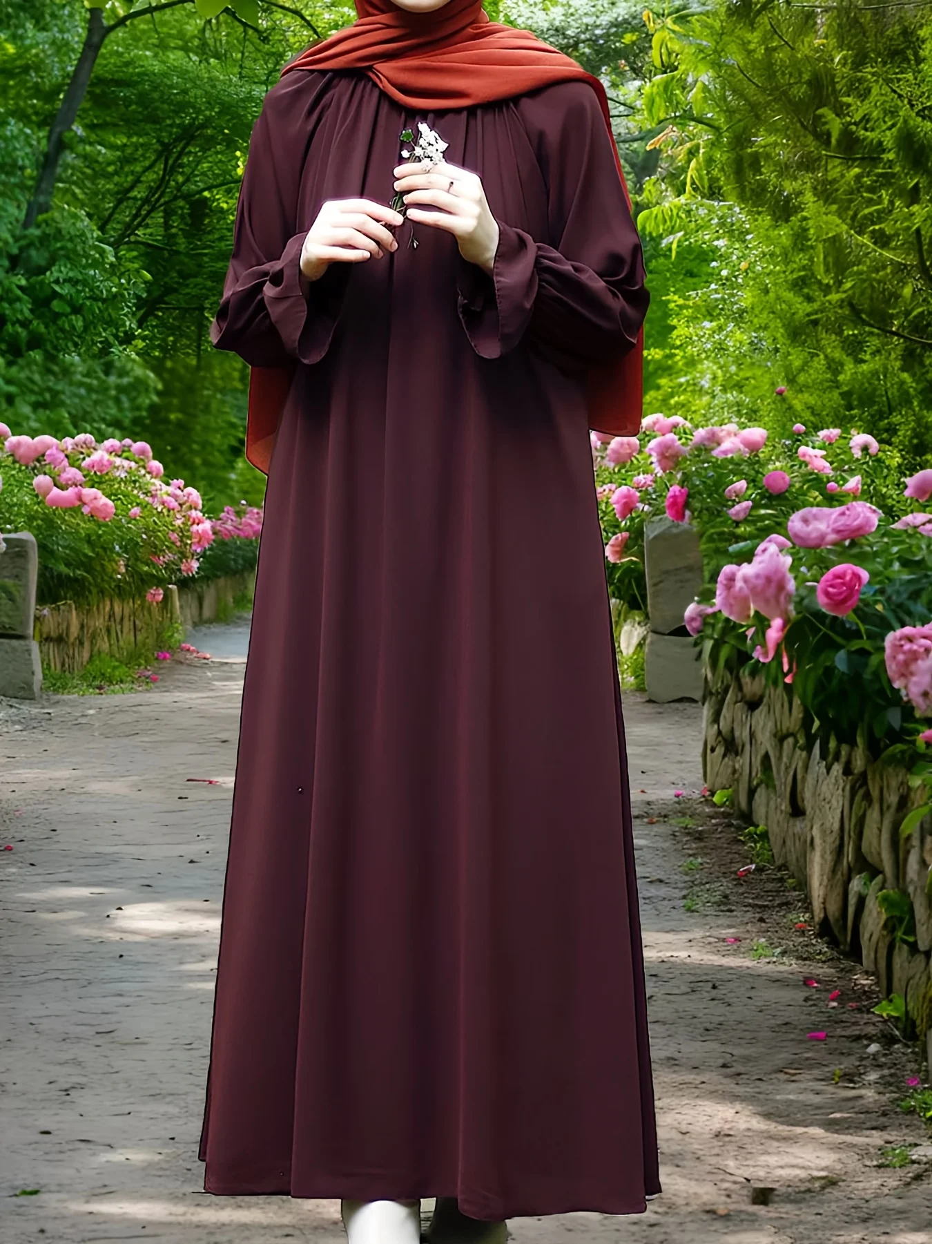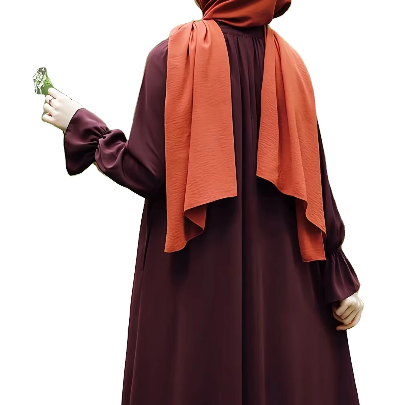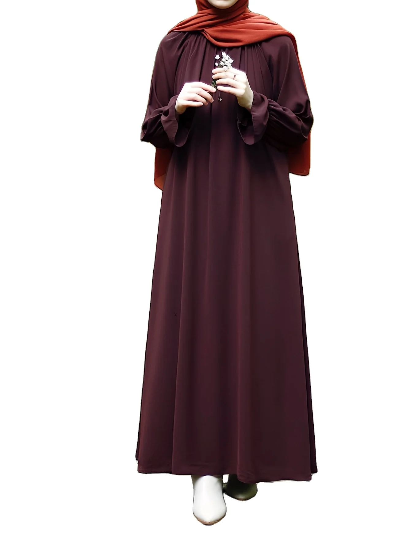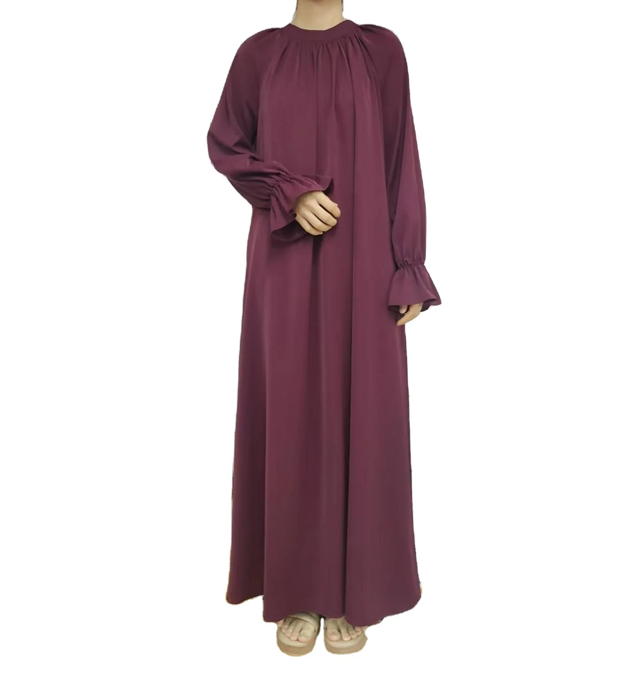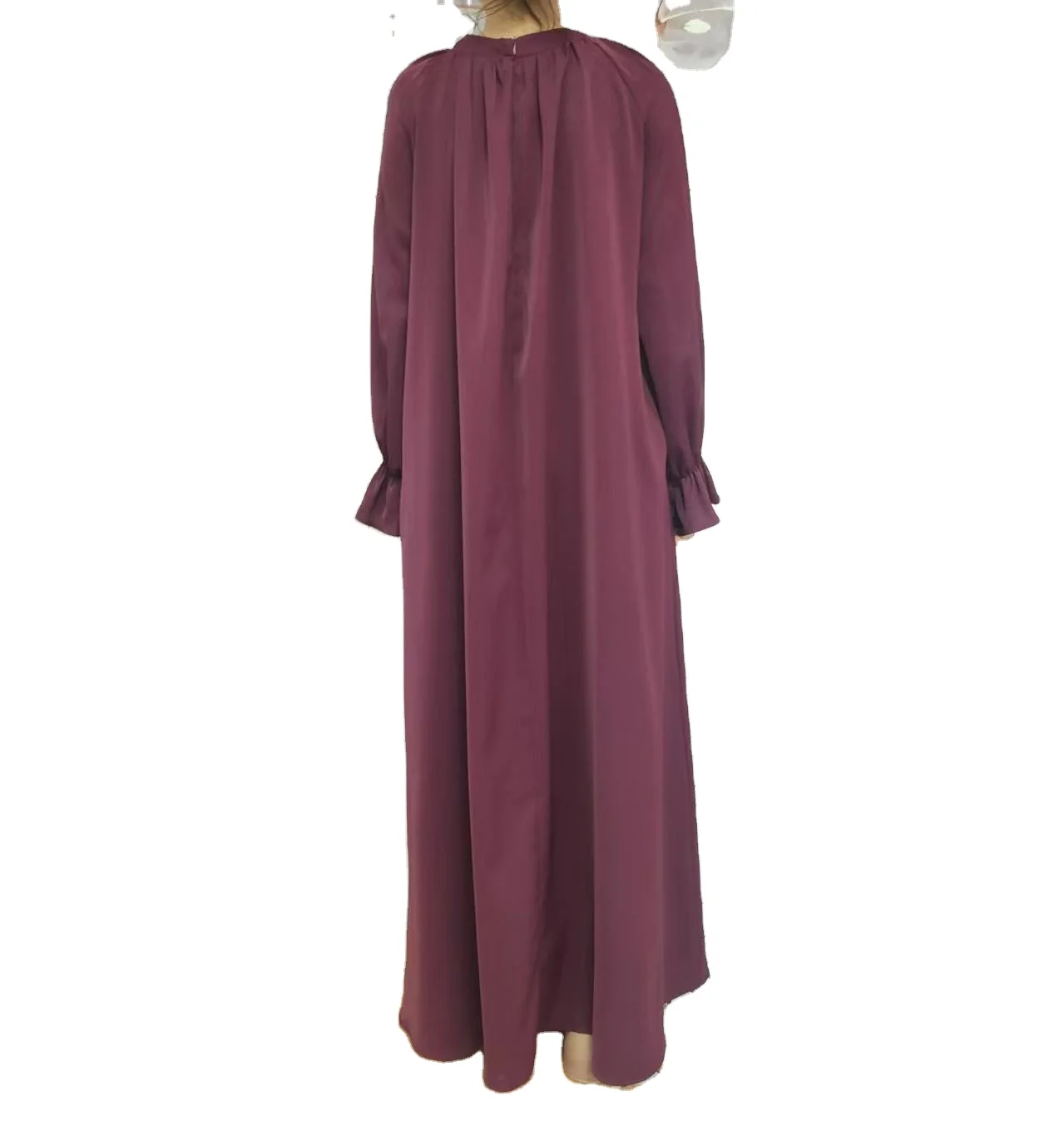 Dubai Hot Flared Cuff Dress Women Long Sleeve Casual Abaya Beads Solid Color Modest Breathable Traditional Muslim Dress