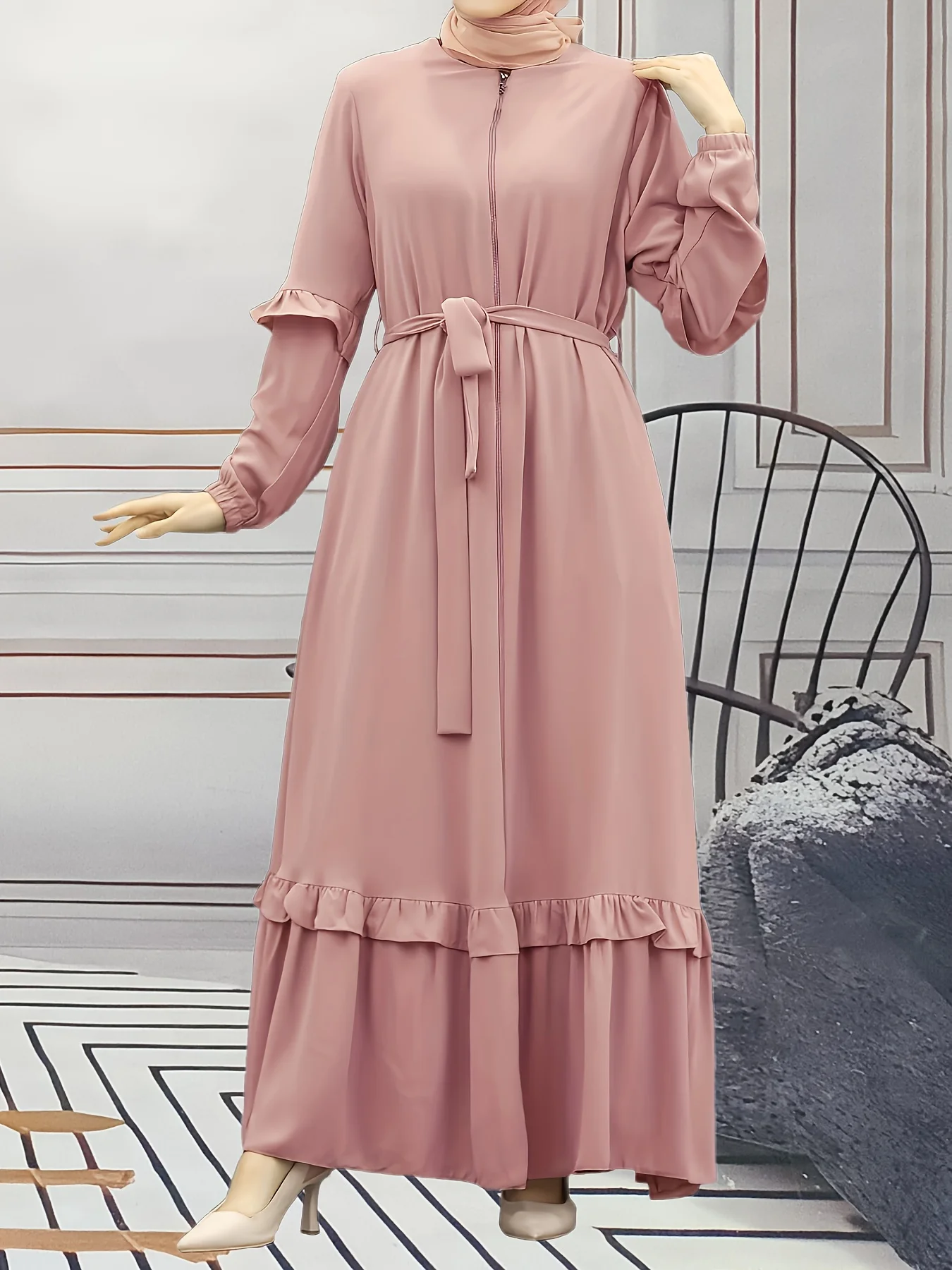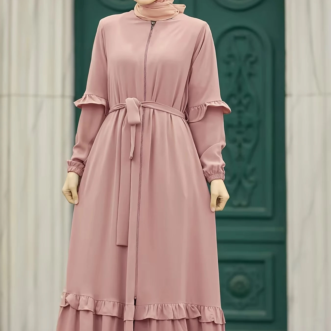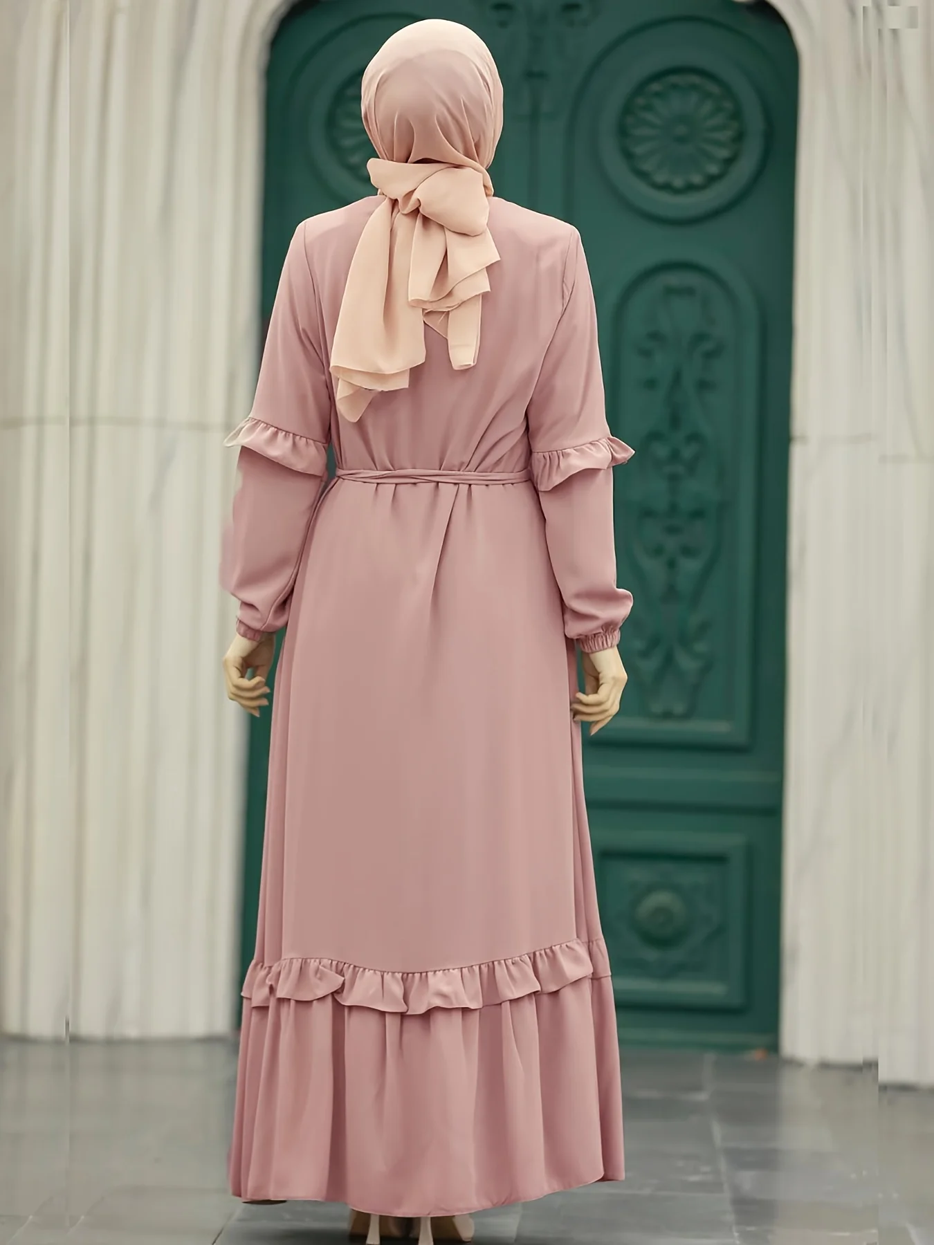 Elegant Traditional Muslim Women's Long Abaya Dress Breathable Polyester Casual Style Dubai Abaya Dress