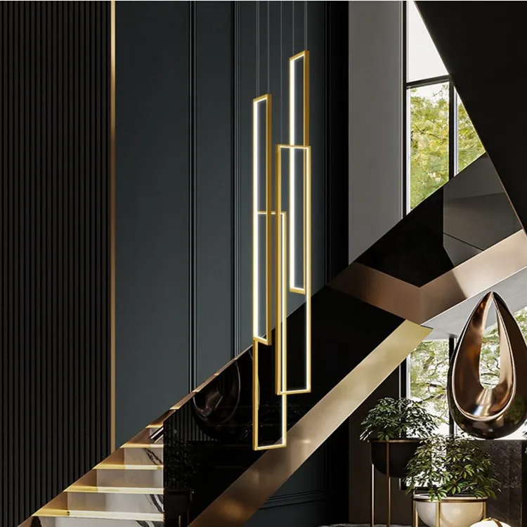 JACKSUN Modern Nordic Rectangular Chandelier for Luxury Loft Minimalist Stair Living Room Creative Villa Building Pendant Light