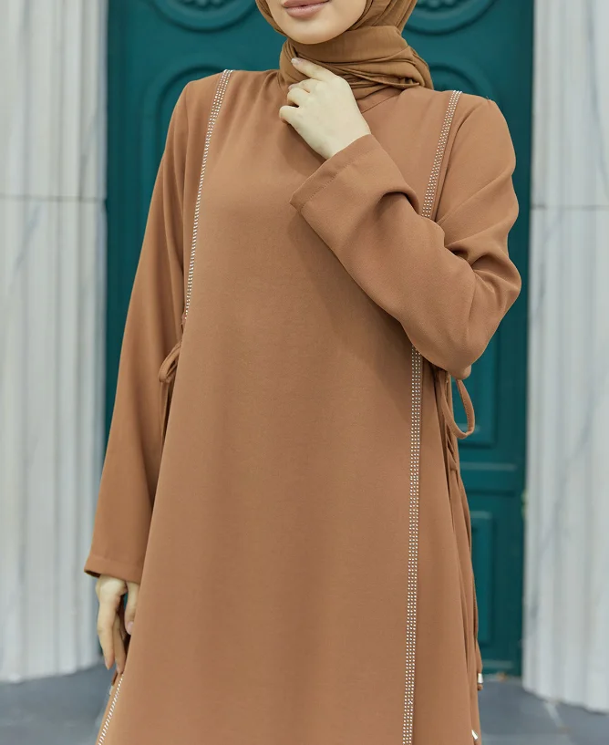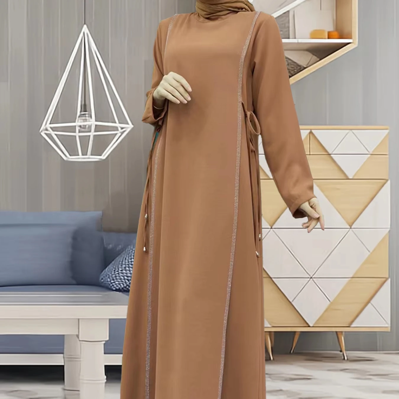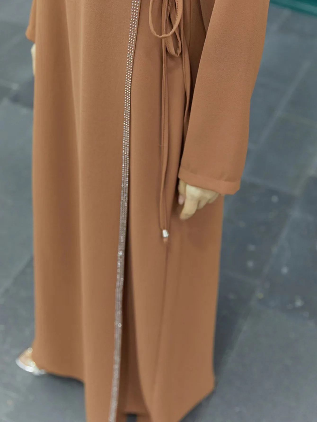 New Arrival Modest Islamic Clothing Robe Diamond Luxurious Abayas Sequined Mesh Muslim Dresses Women Dubai Abaya Polyester