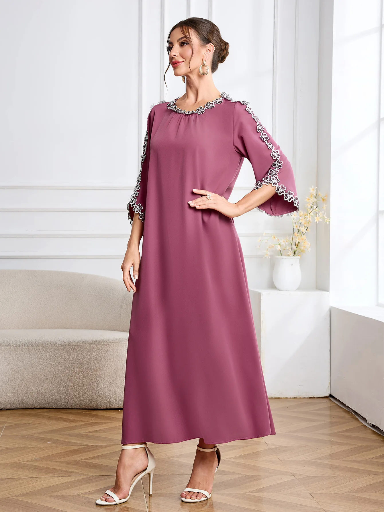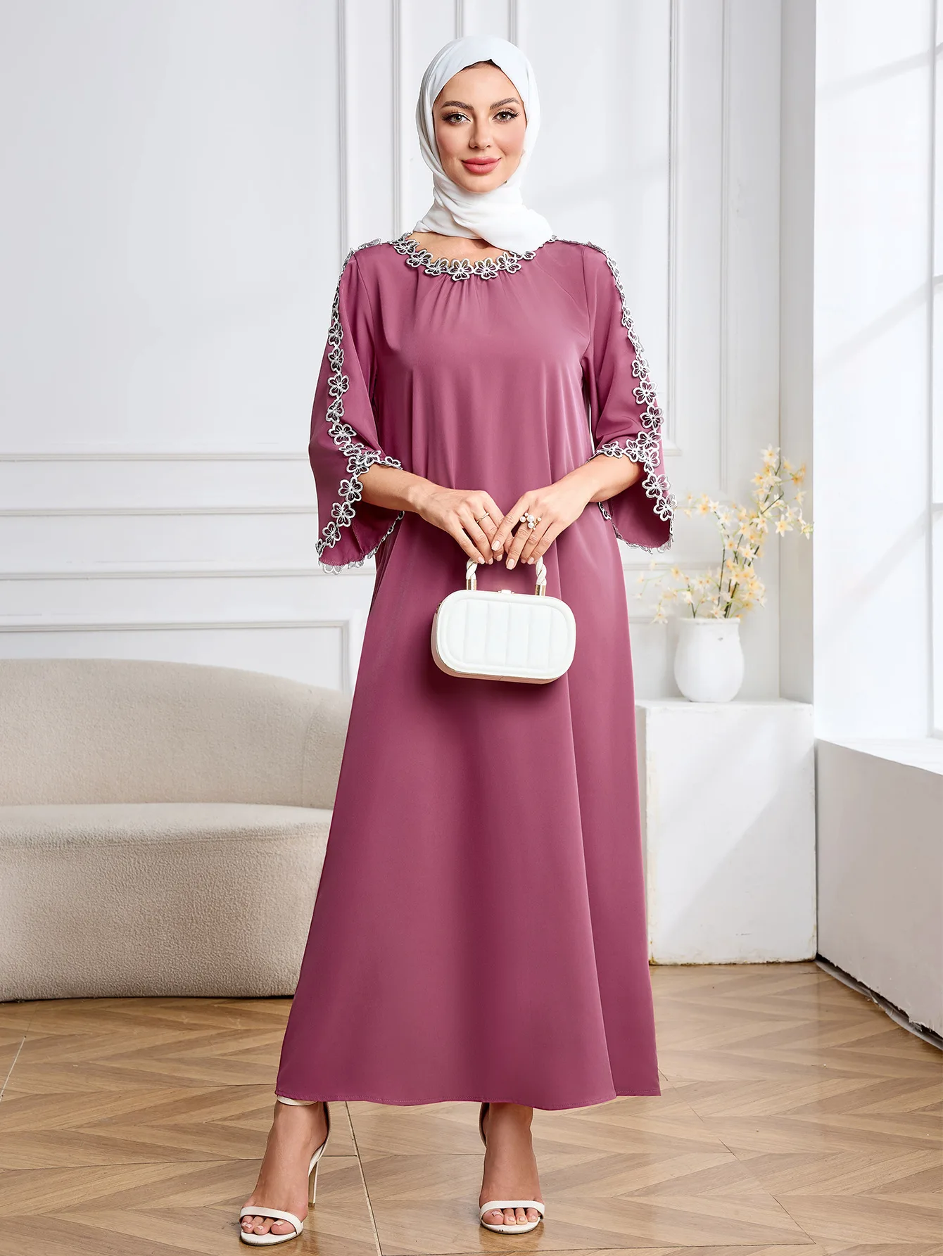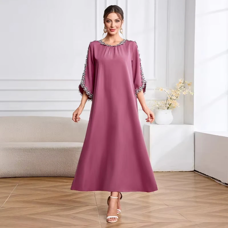 Embroidered Long Gown Dress Muslim Middle Eastern Women's Summer Abaya Ethnic Dubai Breathable Dresses