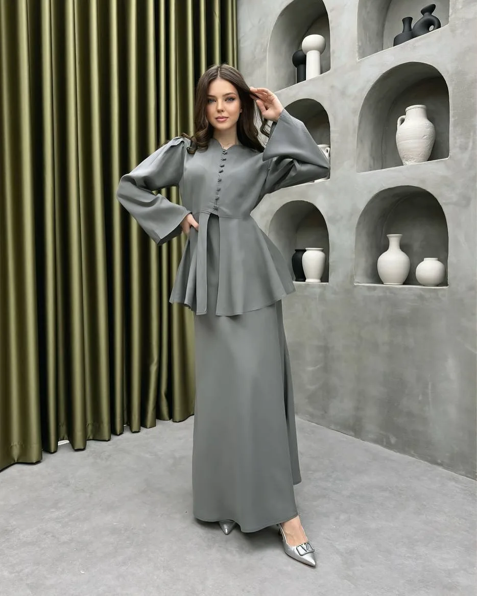 ZYHT 73902 Dark Green Blue Long Sleeve Simple Elegant Evening Dress Customize High End Women Clothing Manufacturer