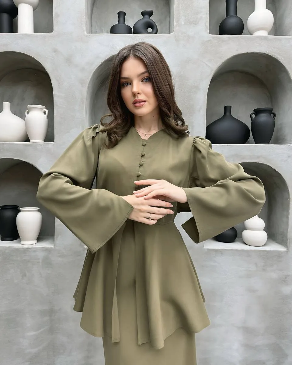 Elegant Women's Casual Cardigan Top Solid Color Natural Breathable Spring Dress Sets New Fashion