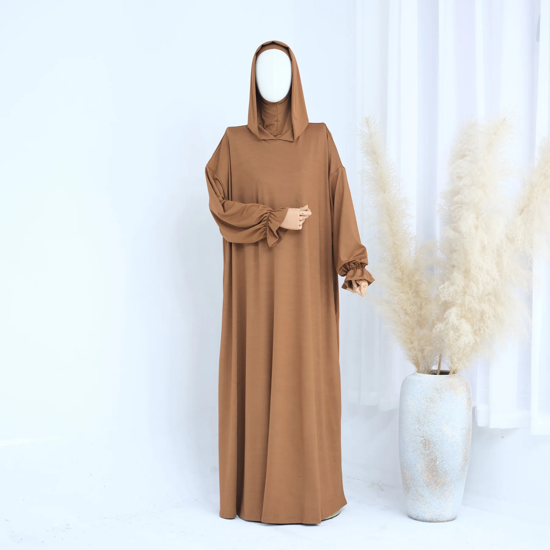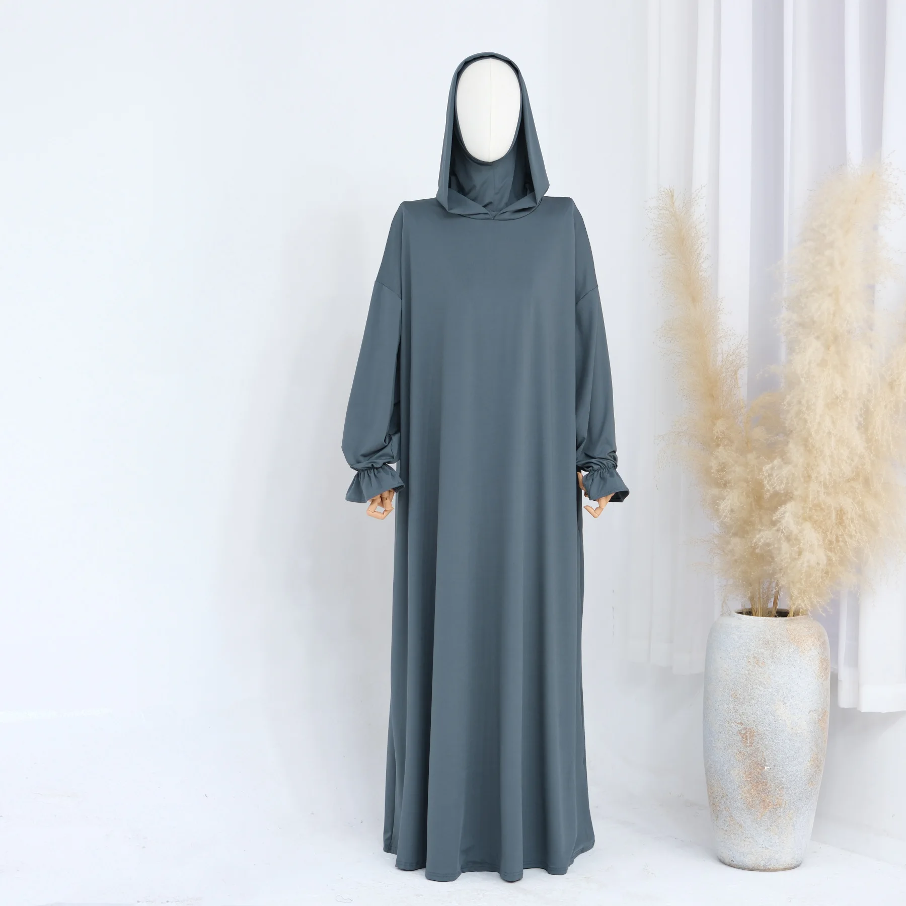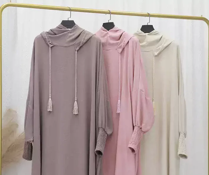 Spring Party Cuff Lace-up Dress Solid Color Loose Dress for Women Plus-size Commuter Muslim Dubai Clothing