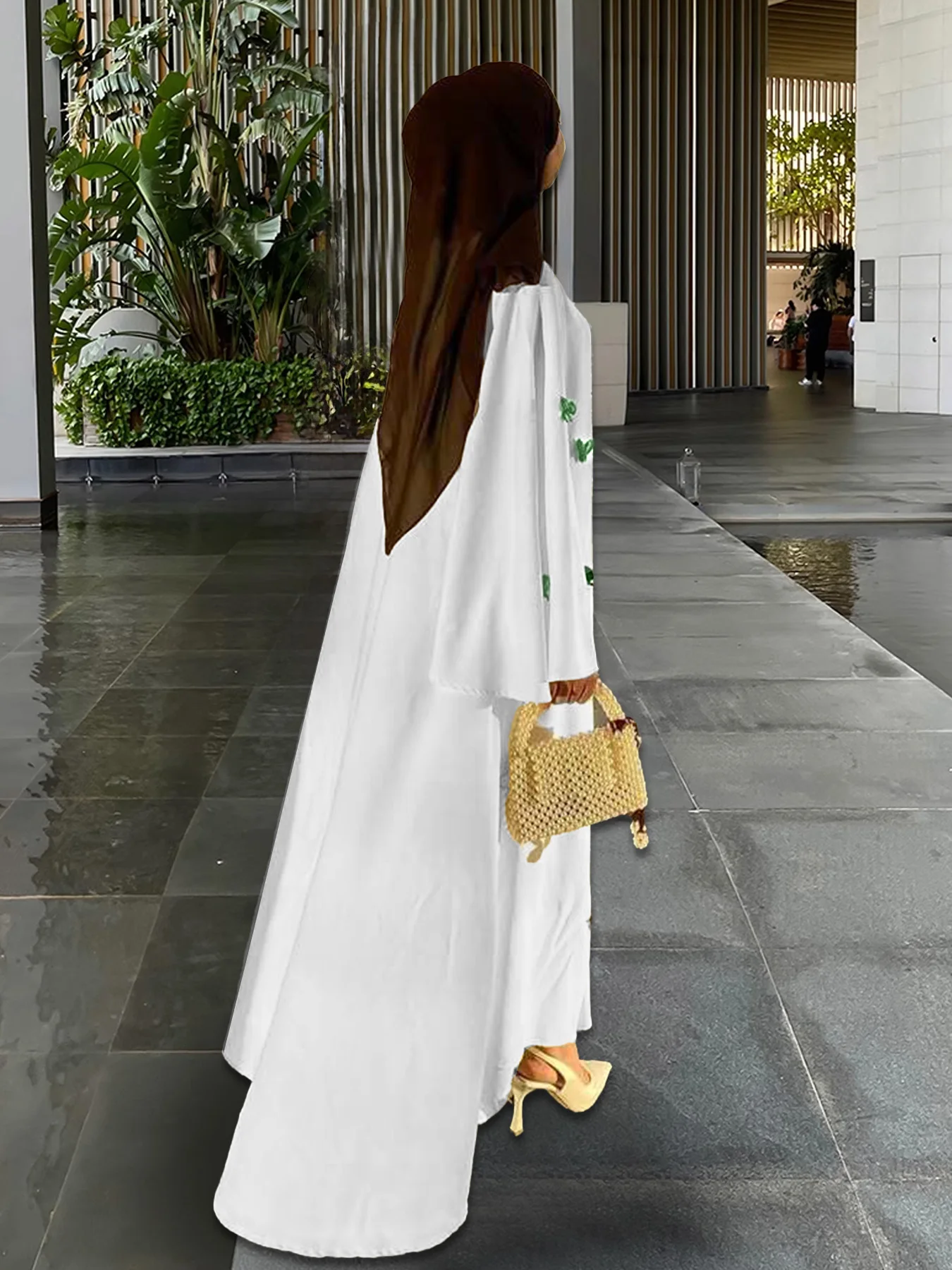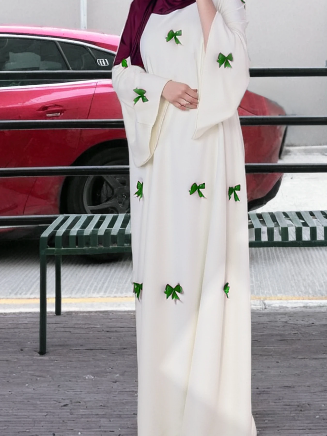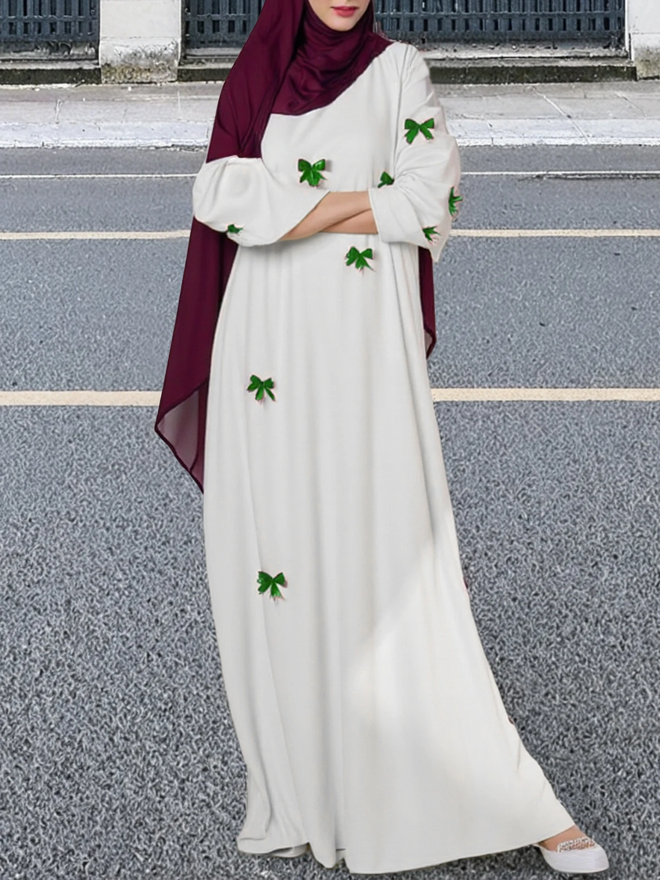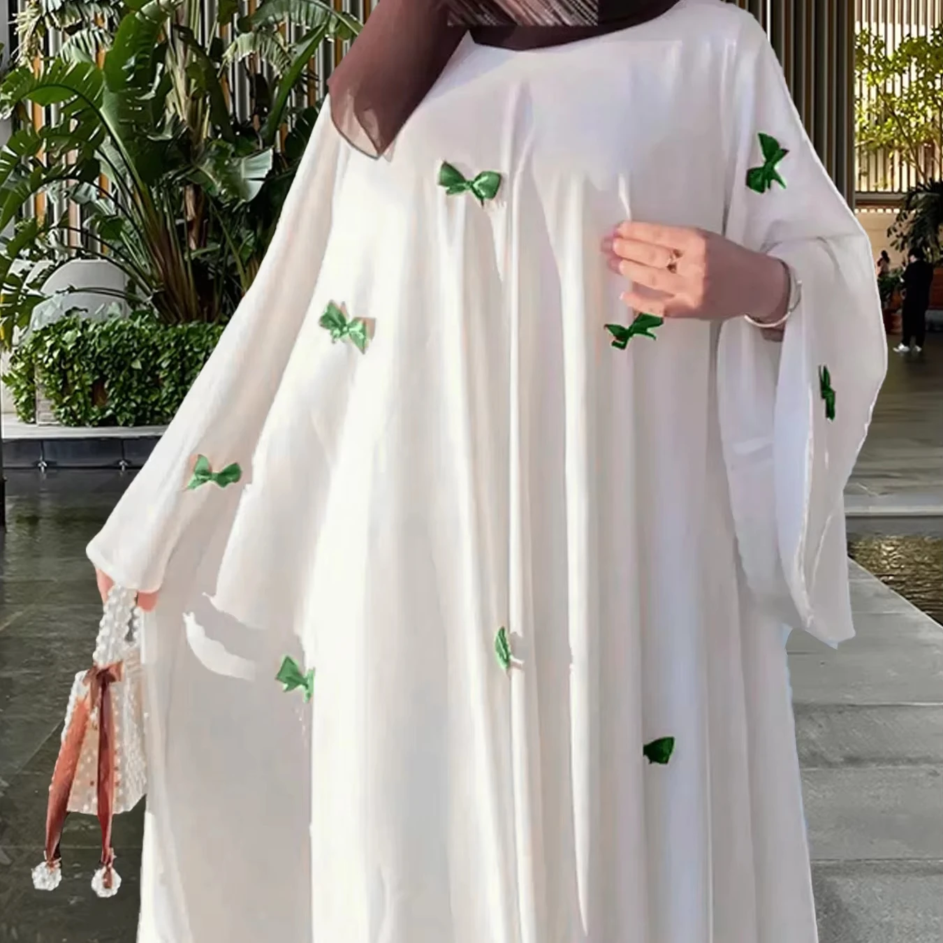 Modest Long Robe Dress for Middle Eastern Arab Women Polyester Autumn Luxury Butterfly Abaya Dress Dubai