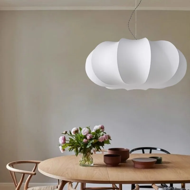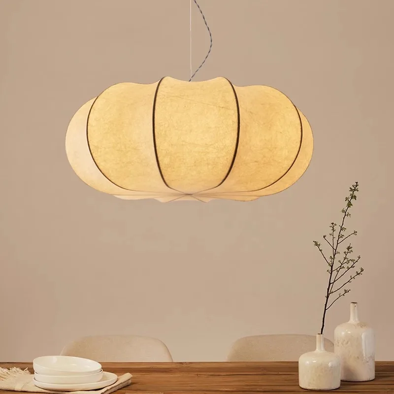 Wabi-sabi Style Adjustable Height Silk Pumpkin-Shaped Branch-Chandelier for Living Dining Room Hanging Installation Middle