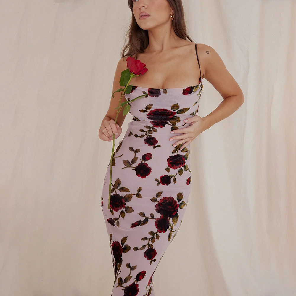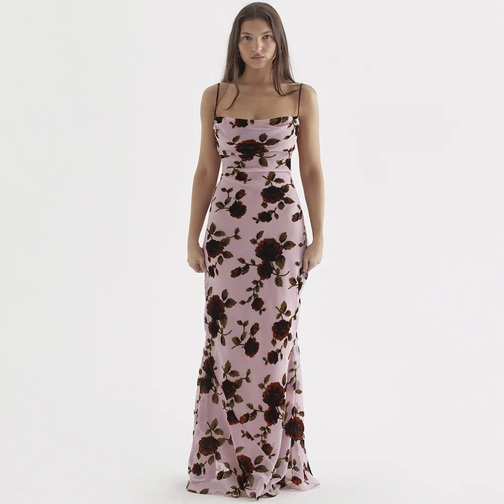 European American Wholesale 2023 Sexy Mesh Print Dusty Print Holiday Backless Women Dress
